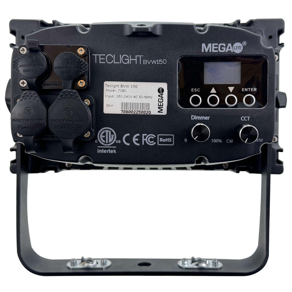 The Mega-Lite TecLight BVW150 is a multipurpose LED fixture equipped with a unique tunable LED light source that allows you to manually control the color temperature from 2700K to 7200K and its intensity directly from the back of the fixture. This makes it ideal for applications where a quick adjustment of the color temperature is needed, it has a 95 CRI in warm and cool white combined. Uses include live broadcasting, photography, product inspection, theatrical work areas, makeup, and wherever variable color temperature is required.