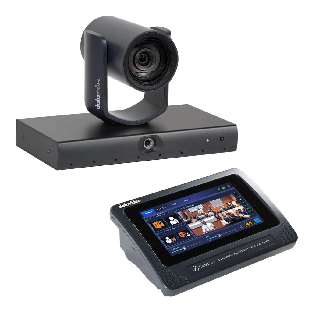 The DataVideo AutoCast Mini kit is a compact, all-in-one presentation and streaming solution that combines the power of the VTC-100 AI Voice Tracking Camera with the versatility of the iCAST mini 4K Presentation Switcher.
