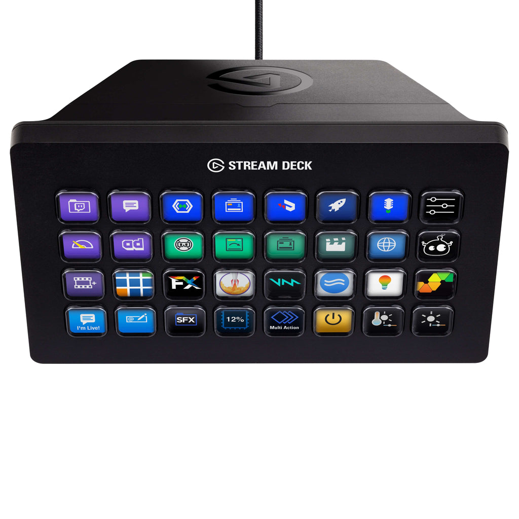 The Elgato Stream Deck XL takes live production control to a whole new level, boasting 32 customizable LCD keys poised to launch unlimited actions with a tap. Instantly activate scenes, launch media, switch cameras, tweak lighting, adjust audio, post tweets, and more. Directly control your entire setup. And get immediate visual feedback to confirm your every command. Stream Deck XL integrates seamlessly with your favorite tools and platforms, including OBS Studio, XSplit, Streamlabs, Twitch, YouTube, OvrStream, VoiceMod, vMix, and StreamElements. All so you can easily power through your workflow, and engage your audience like never before.