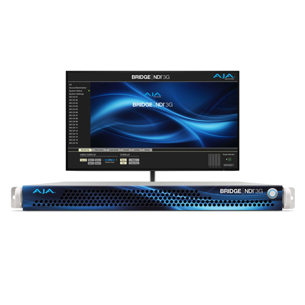 The AJA BRIDGE NDI 3G is a 1RU gateway offering high density conversion from 3G-SDI to NDI and NDI to 3G-SDI for both multi-channel HD and 4K/UltraHD. Designed to drop into any existing NDI or SDI workflow as a plug-and-play appliance, it's easy to deploy and administer.
