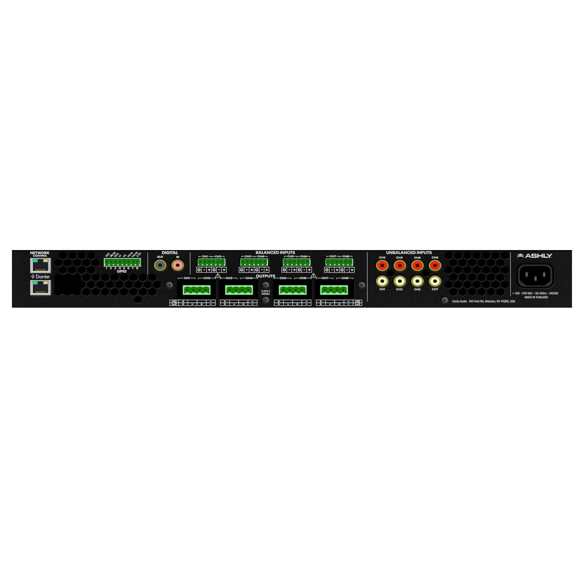 • 60W x 8-ch highly efficient Class D amplification in a 1 RU chassis
