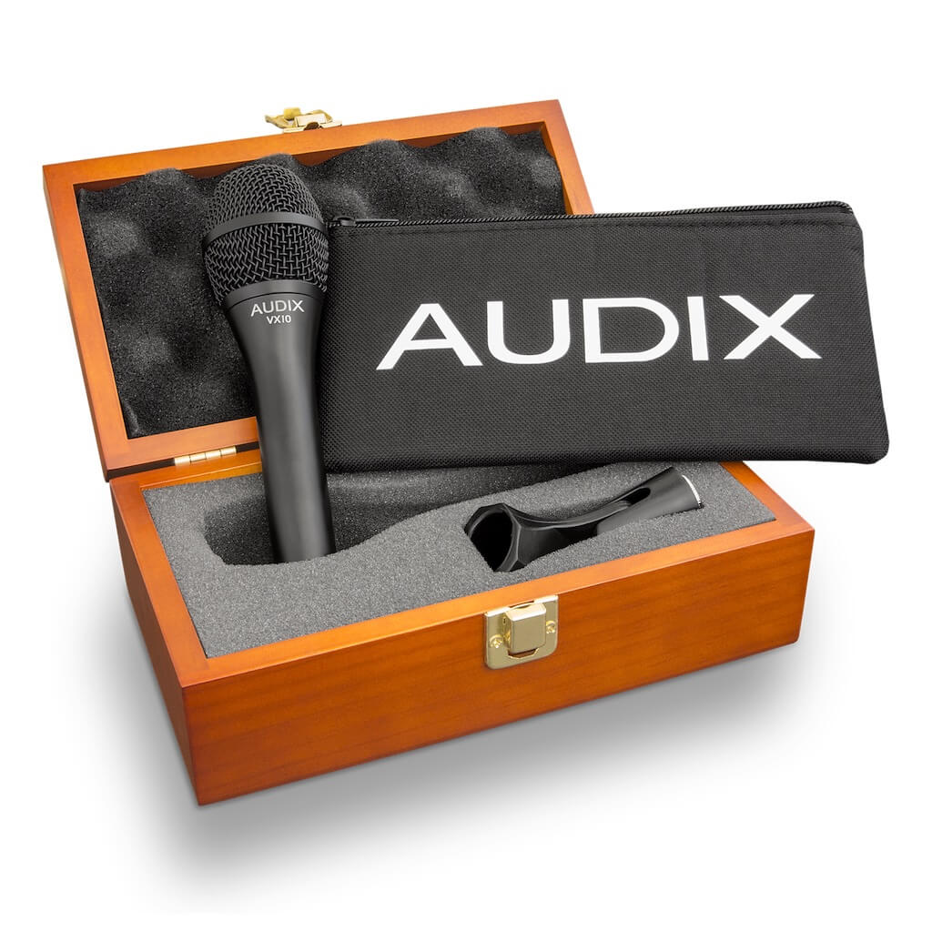 The Audix VX10 condenser vocal microphone is engineered to deliver outstanding performance for live sound and broadcast applications. With a precisely controlled frequency response from 40 Hz to 20 kHz, the VX10 excels in capturing transients, reproducing vocals and speech with exceptional clarity, depth, and realism.