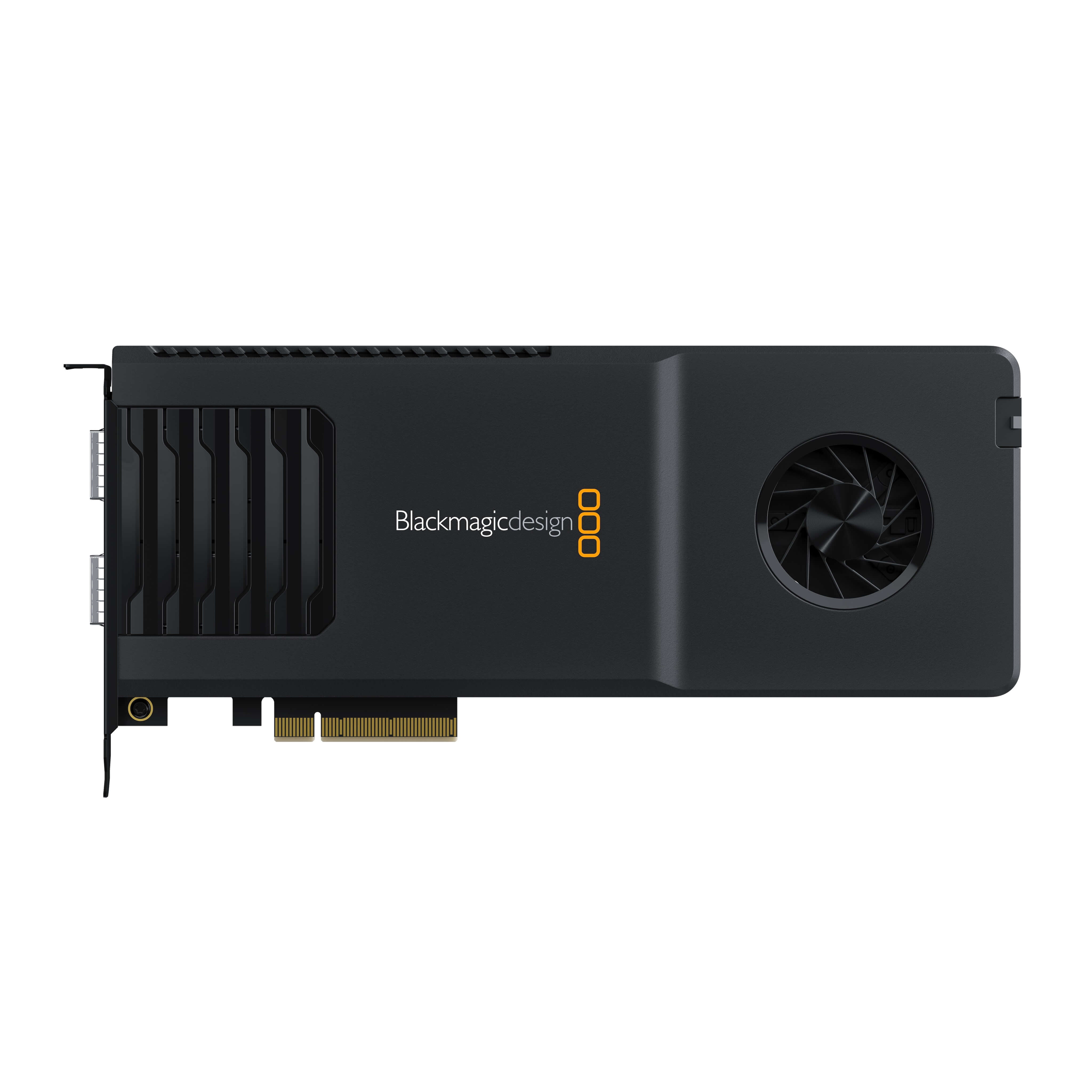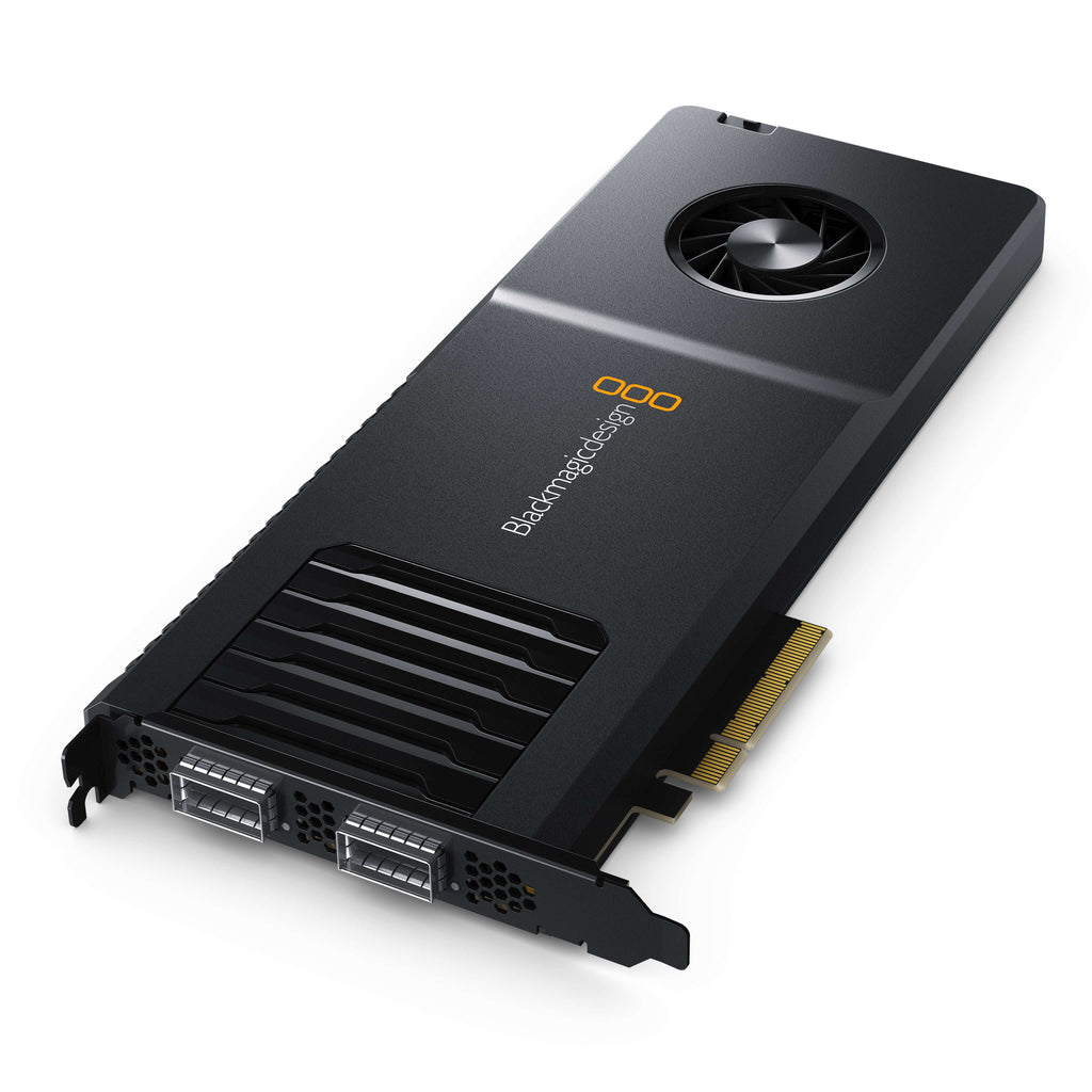The Blackmagic Design DeckLink IP 100G features 8 channels of Ultra HD video, in simultaneous capture and playback to 2110 IP broadcast systems via dual QSFP28 optical fiber Ethernet connections for full redundancy. It is designed to work with the highest quality video with support for capture and playback to popular formats such as Apple ProRes, DNxHD and even 10-bit uncompressed. DeckLink IP 100G connections are multi rate so they support all SD, HD and Ultra HD standards up to 2160p120.