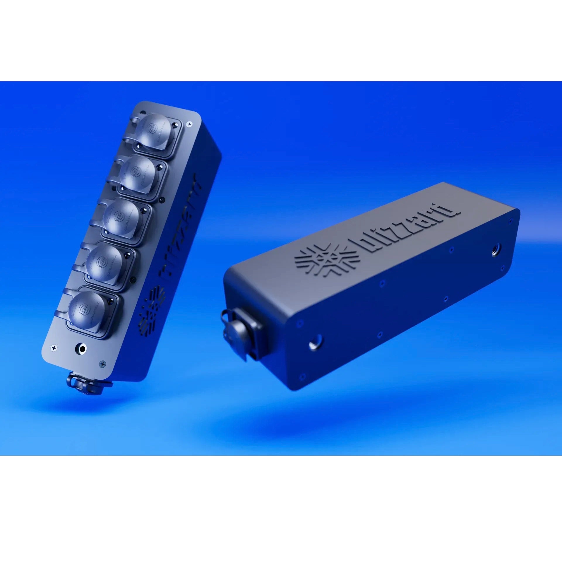 The Blizzard Lighting Drop POP TRUE is a stage power drop box that offers reliable power distribution with 1x powerCON TRUE1-compatible input feeding 5x powerCON TRUE1-compatible outputs. It features a rugged design, housed in a tough molded rubber enclosure with 12 AWG wiring, and 20A connectors with rubber caps for safe, reliable indoor or outdoor use.