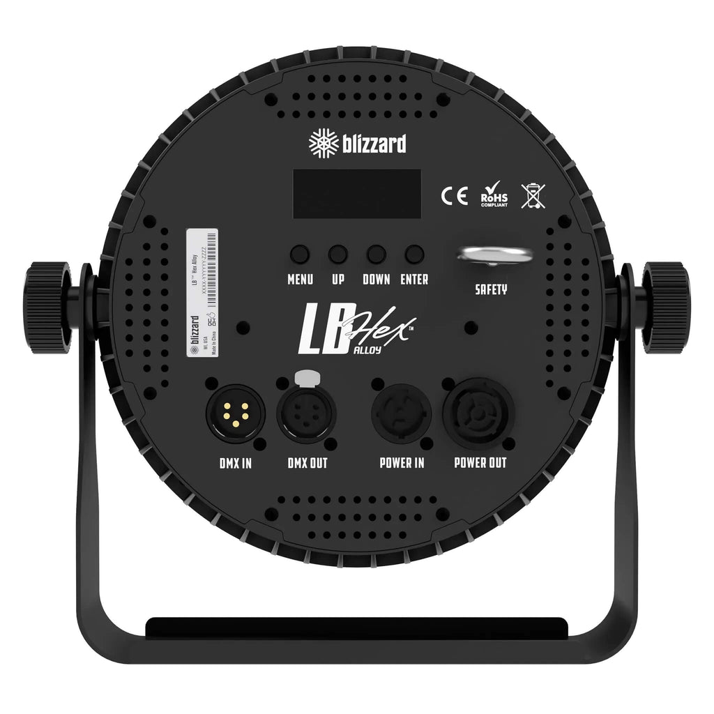 The Blizzard Lighting LB Hex Alloy delivers full-spectrum light from 18 x 18W RGBAW+UV high-output 6-in-1 LEDs, all housed in a rugged cast-aluminum body. It offers 26 standard and 32 Rosco® color-matched presets for instant access to a wide range of vibrant tones, and its convection cooling and temperature-controlled fan ensures quiet, reliable performance in any setting.