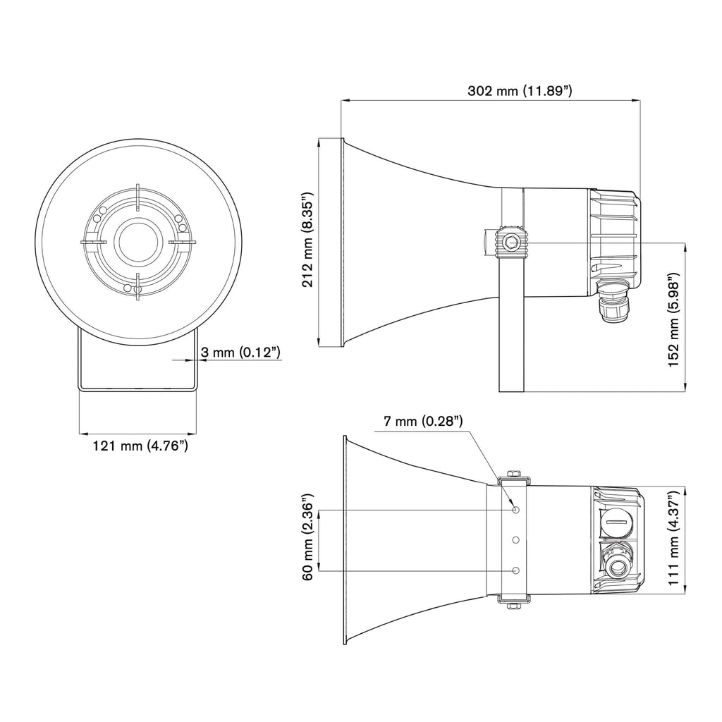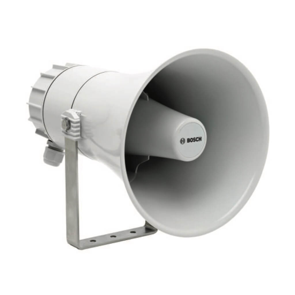 The Bosch LH2-UC15E 15W Horn Loudspeaker is specifically designed for excellent sound reproduction in marine applications and other industrial environments. The housing is rugged, water and dust-protected, and resistant to the corrosive effects of seawater and most industrial atmospheres. The horn loudspeaker is made from ABS plastic and supplied with a stainless steel mounting bracket.