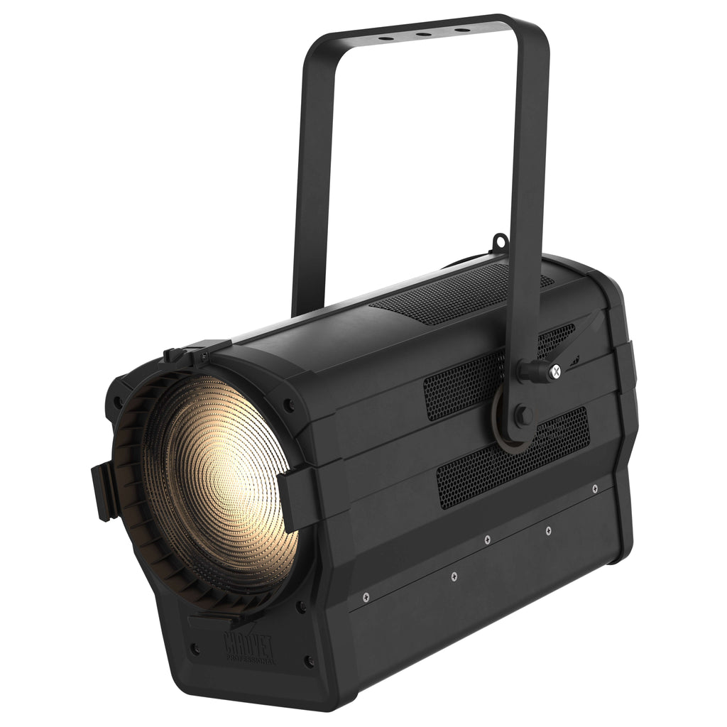The Chauvet Professional Ovation F-915VW is a high-power, variable white Fresnel-style fixture that utilizes our unique 6-color LED system. This fixture projects a bright, beautifully soft field of light in nearly any temperature of white with high CRI and CQS making it ideal for theatres and TV studios. Each Color Temperature can be further adjusted for +/- green and a motorized zoom with a 17–85° field range allows you to add light where it is needed. The Color Temperature and hue along with zoom and output can be controlled via DMX or on-board dials.