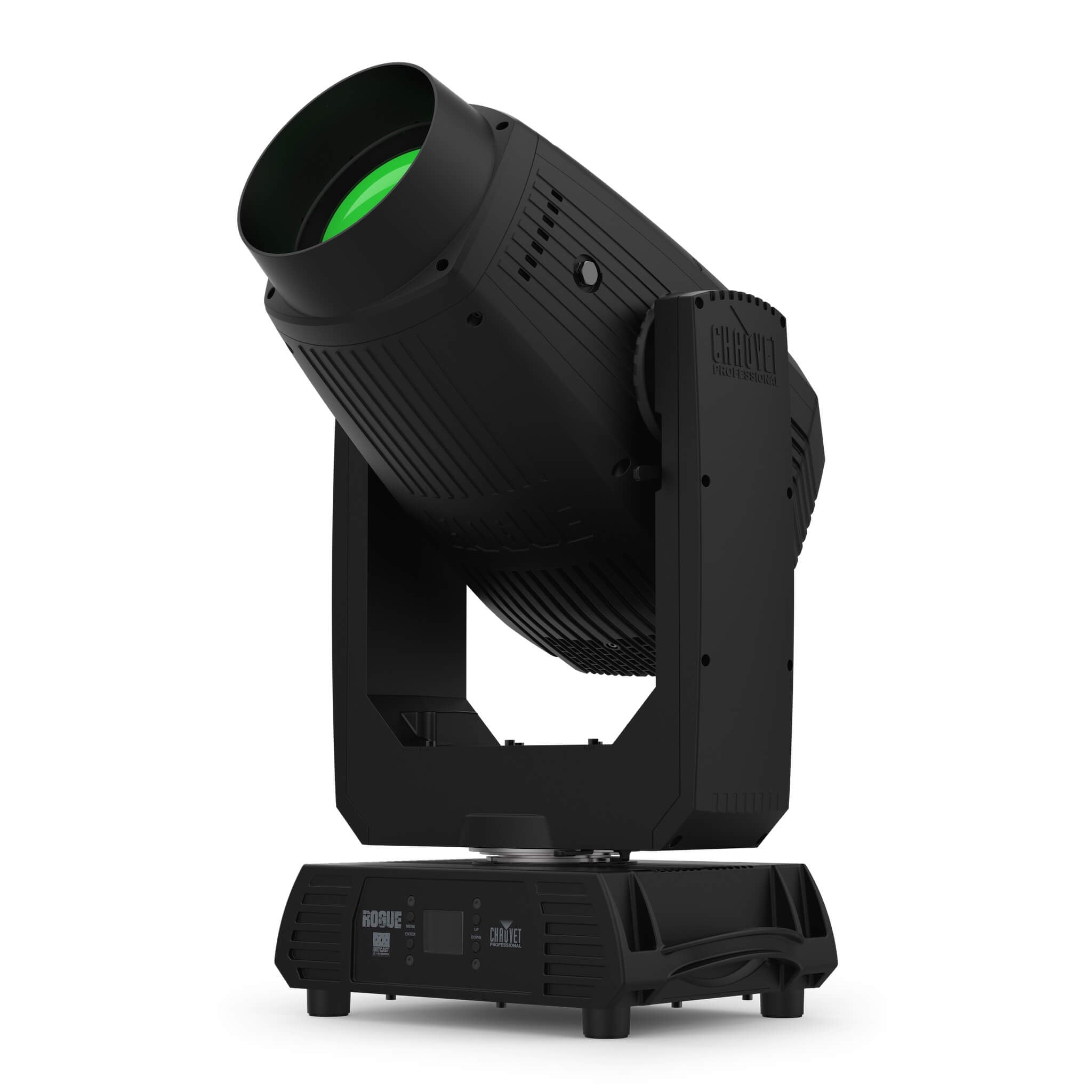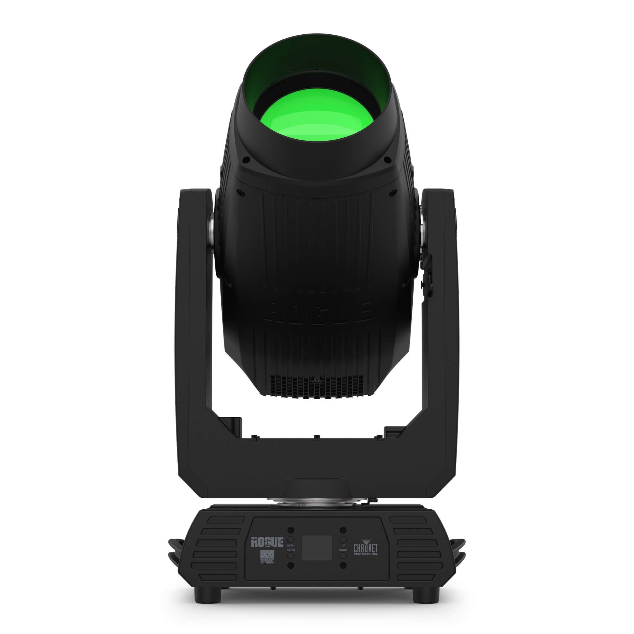 The Chauvet Professional Rogue Outcast 2 Hybrid is a rugged IP65-rated Spot/Beam/Wash moving head with a lightweight alloy body housing a sophisticated optical system that delivers incredible brightness and a refined linear zoom that smoothly spans an expansive range of narrow to wide beam angles in every mode. The intense output of its 400W 6500K lamp can be precisely focused to project sharp midair beams and perfectly crisp spots or subtly softened with its frost and beam flattening features. Create stunning looks with dual gobo wheels and layerable prisms or shape luscious color washes with this versatile Outcast.