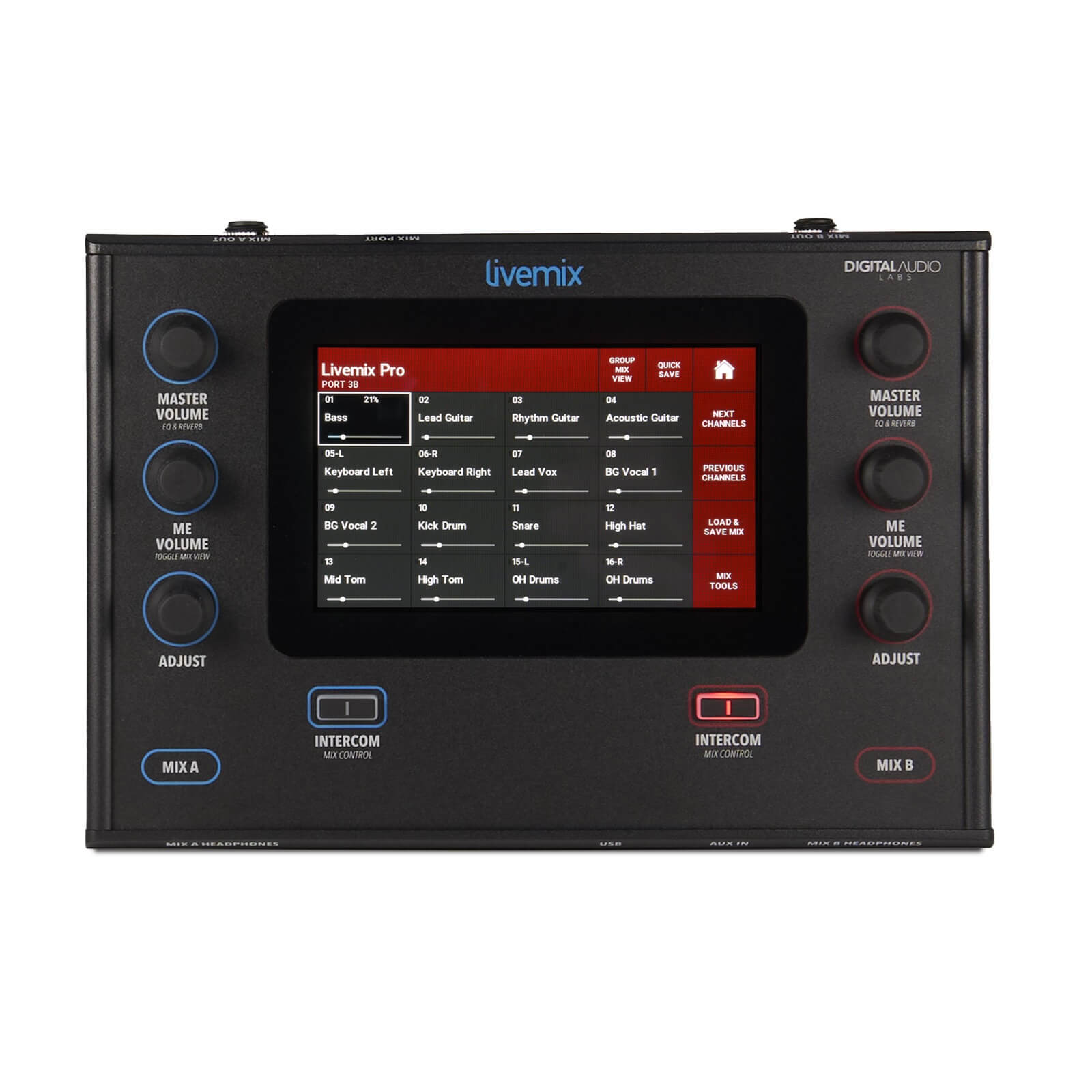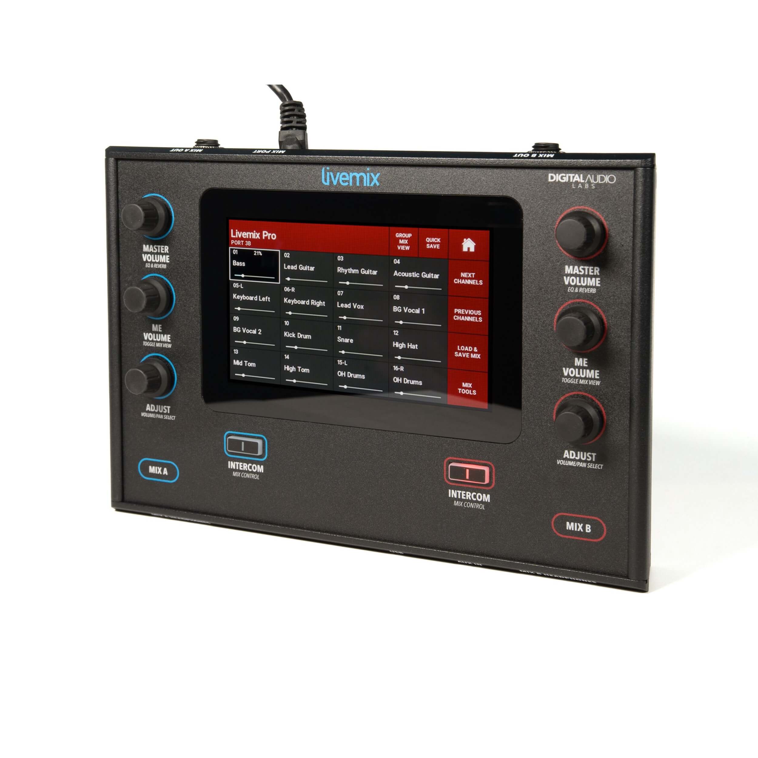 The Digital Audio Labs Livemix Pro Duo contains two mixes in one box, offering an incredible value and reducing stage clutter. Each of the two mixes has its own headphone amplifier and outputs. Each mix is fully featured and used the touchscreen to make the perfect personal monitor mix.