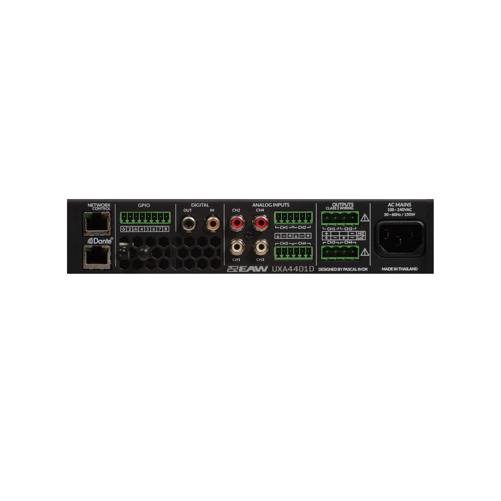 The EAW UXA4401D multipurpose installation amplifier with Dante has been designed to provide configurable, consistent and reliable high performance audio amplification for residential, commercial and entertainment applications.
