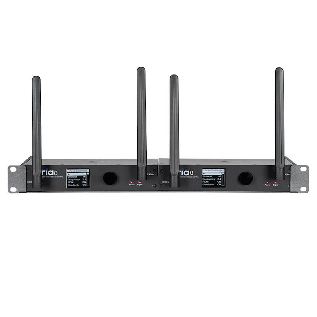 The Elation Aria X2 Shelf is a 19 inch rackmount metal shelf designed to hold two Aria X2 transceivers or two Net 4 devices.