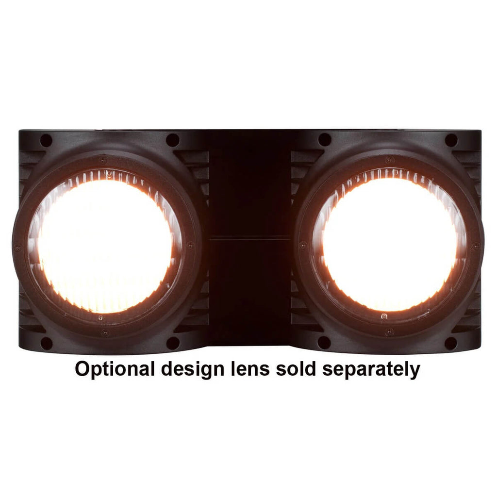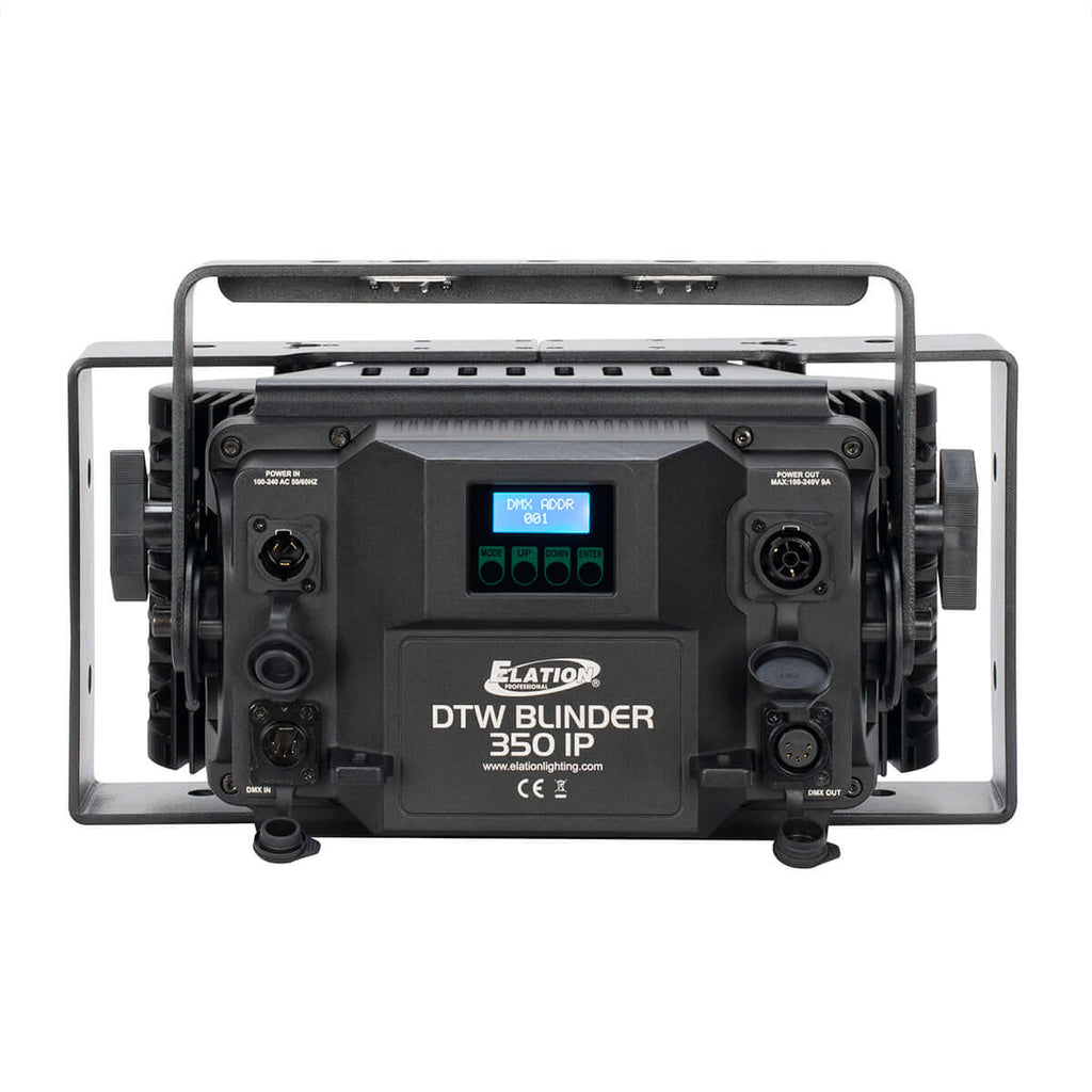The Elation DTW Blinder 350 IP houses two high-powered 175W warm-white and amber COB LEDs that emulate the “Dim to Warm” look of conventional tungsten fixtures. Useful as a traditional audience blinder or warmed to enhance special moments, it features full color-temperature range control plus independent Dim-to-Warm channel control (1,800K-3,200K). Its IP65 rating means it can be exposed to the elements without the cost or inconvenience of protective coverings.