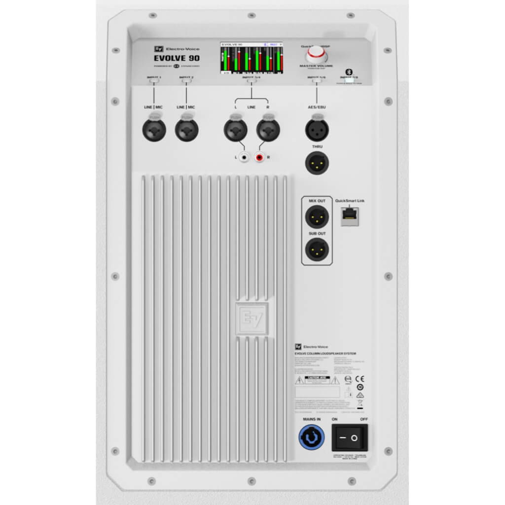 EVOLVE 90 is integrated into the QuickSmart Mobile App ecosystem, which allows the user to control it as part of a system with other Bluetooth-enabled Electro-Voice portable speakers.