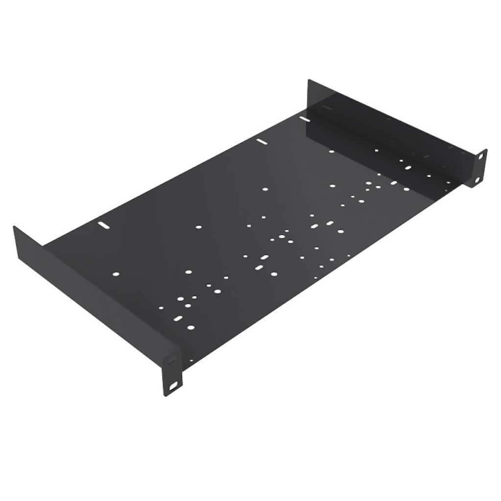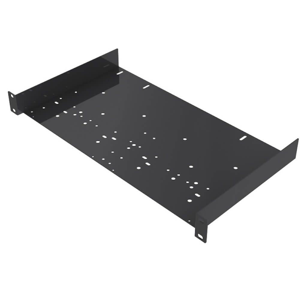 The Gator Rackworks GRW-SHELF1UNI is a universal rack shelf that is 1U and 10" deep with a universal hole pattern for mounting smaller rack components.
