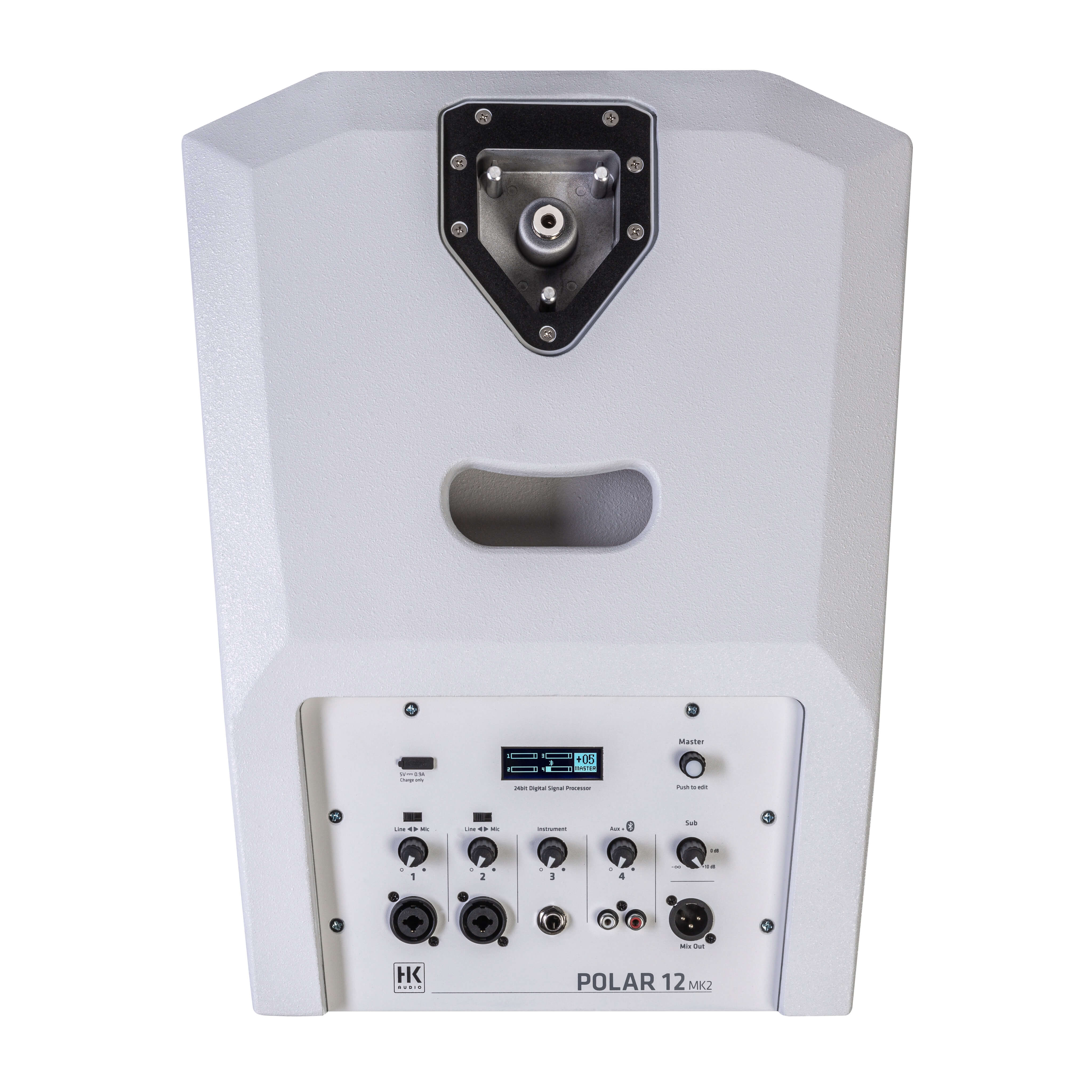 The HK Audio POLAR 12 MK2 is a great choice for DJs, bands and performers with high demands on low frequencies and level. The 12" woofer and larger cabinet volume ensure powerful, defined bass – even under intensive continuous use. With its elegant design, the POLAR 12 MK2 fits perfectly into upscale events – from weddings to club gigs. Thanks to its integrated 4-channel mixer, Bluetooth 5.0 True Wireless Stereo, phantom power, USB-C charging port and a low-resonance aluminum enclosure, it offers maximum flexibility and professional features in a compact format.