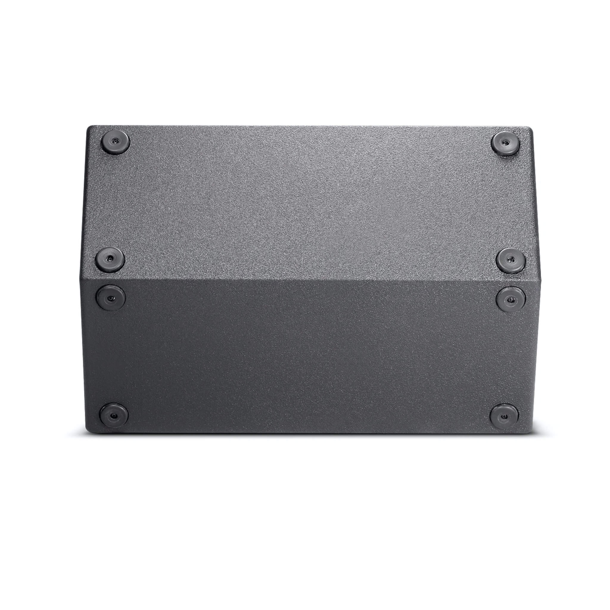 The enclosure is constructed of top quality Baltic birch plywood and is coated in JBL’s rugged DuraFlex finish. It is a symmetrical 30° wedge design, with four non-slip rubber feet per side enabling convenient left and right applications of adjacent monitors. The transducers are protected by an attractive 16 gauge CNC-machined steel grille. It is internally lined with acoustically transparent foam to provide additional transducer protection.