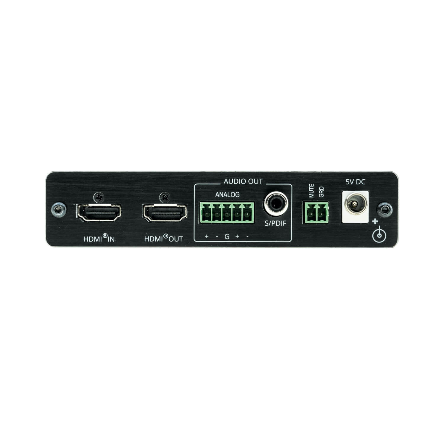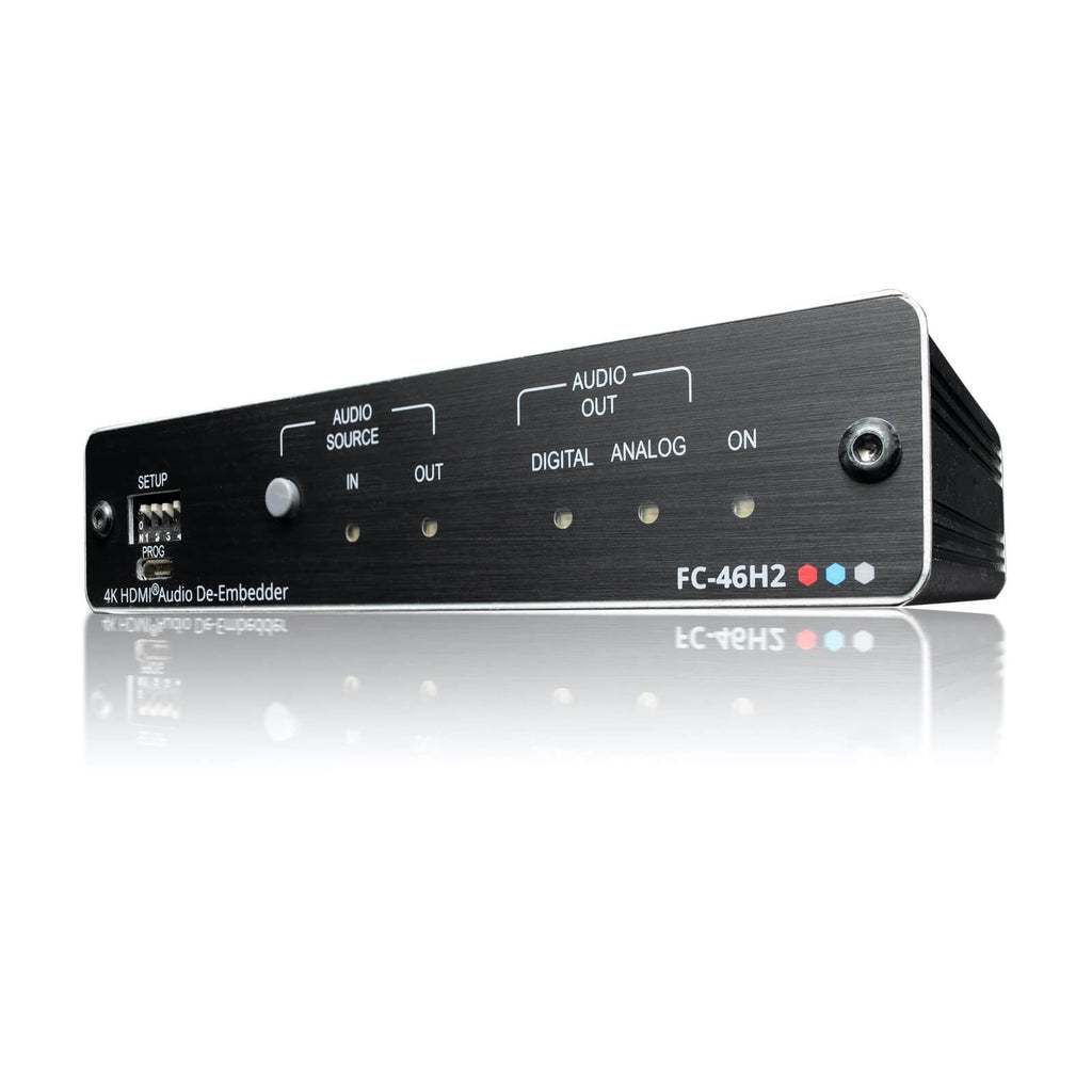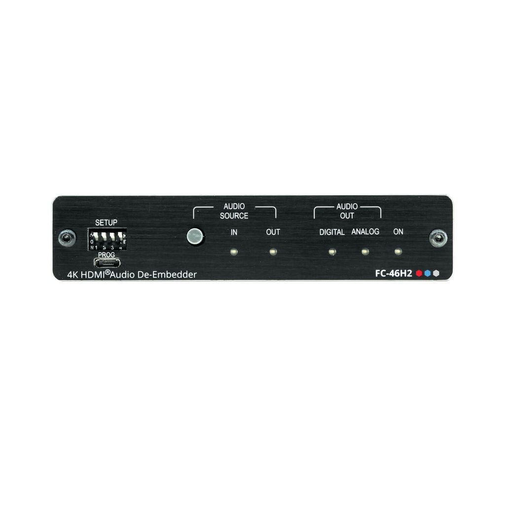 The Kramer FC-46H2 is a professional 4K HDR HDMI audio de-embedder for HDMI signals up to 4K@60Hz (4:4:4) resolution. The unit de-embeds the audio signal from the HDMI input or from the HDMI output ARC (Audio Return Channel) and simultaneously outputs it to the S/PDIF and 5-pin balanced audio outputs.