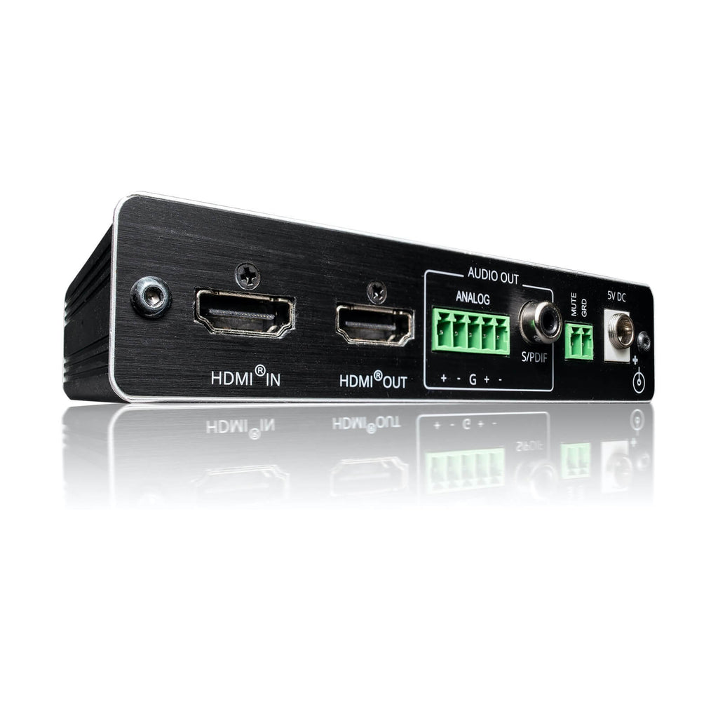 De–embeds the audio from HDMI signals with resolution up to 4K@60Hz (4:4:4) and data rate up to 18Gbps (6Gbps per graphic channel), deep color up to 12–bit, supporting HDR and HDCP 2.2/1.4.
