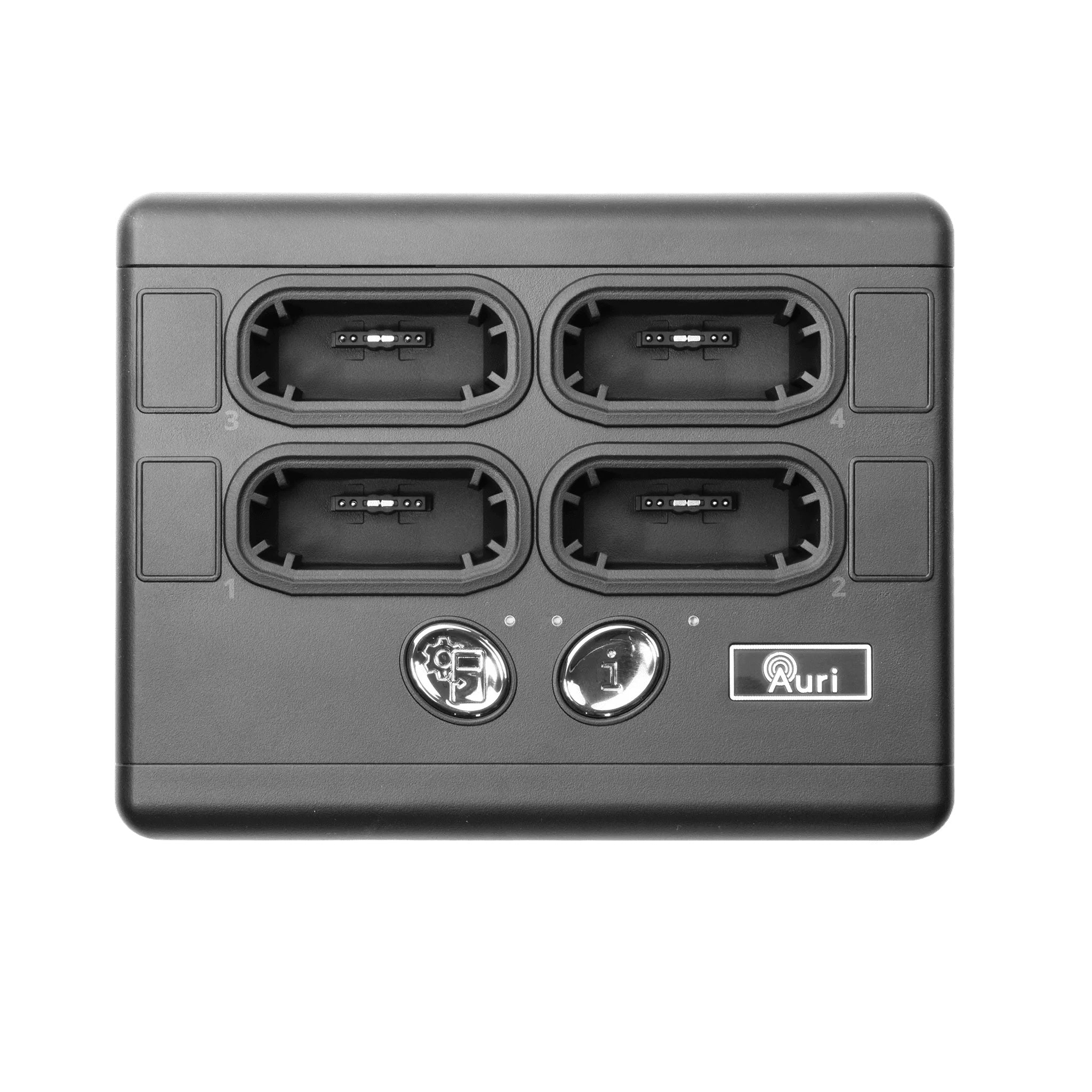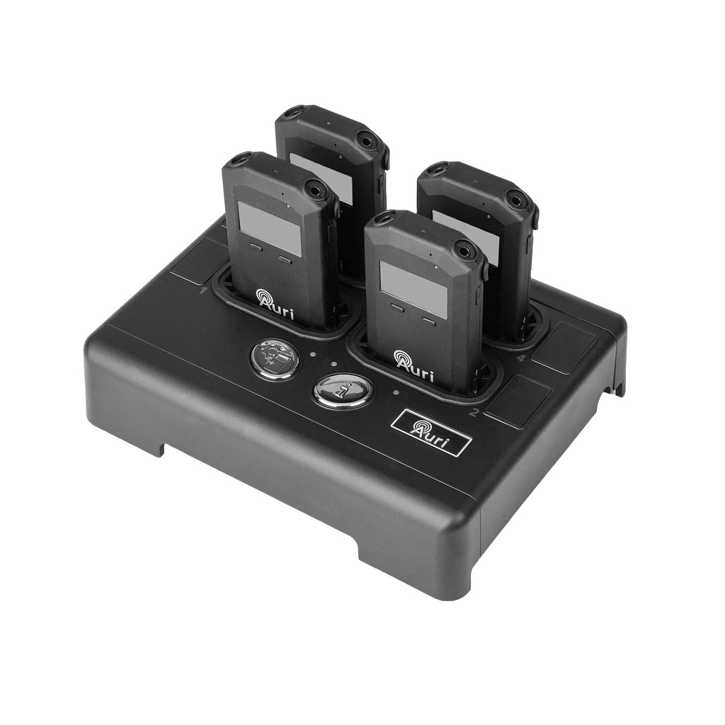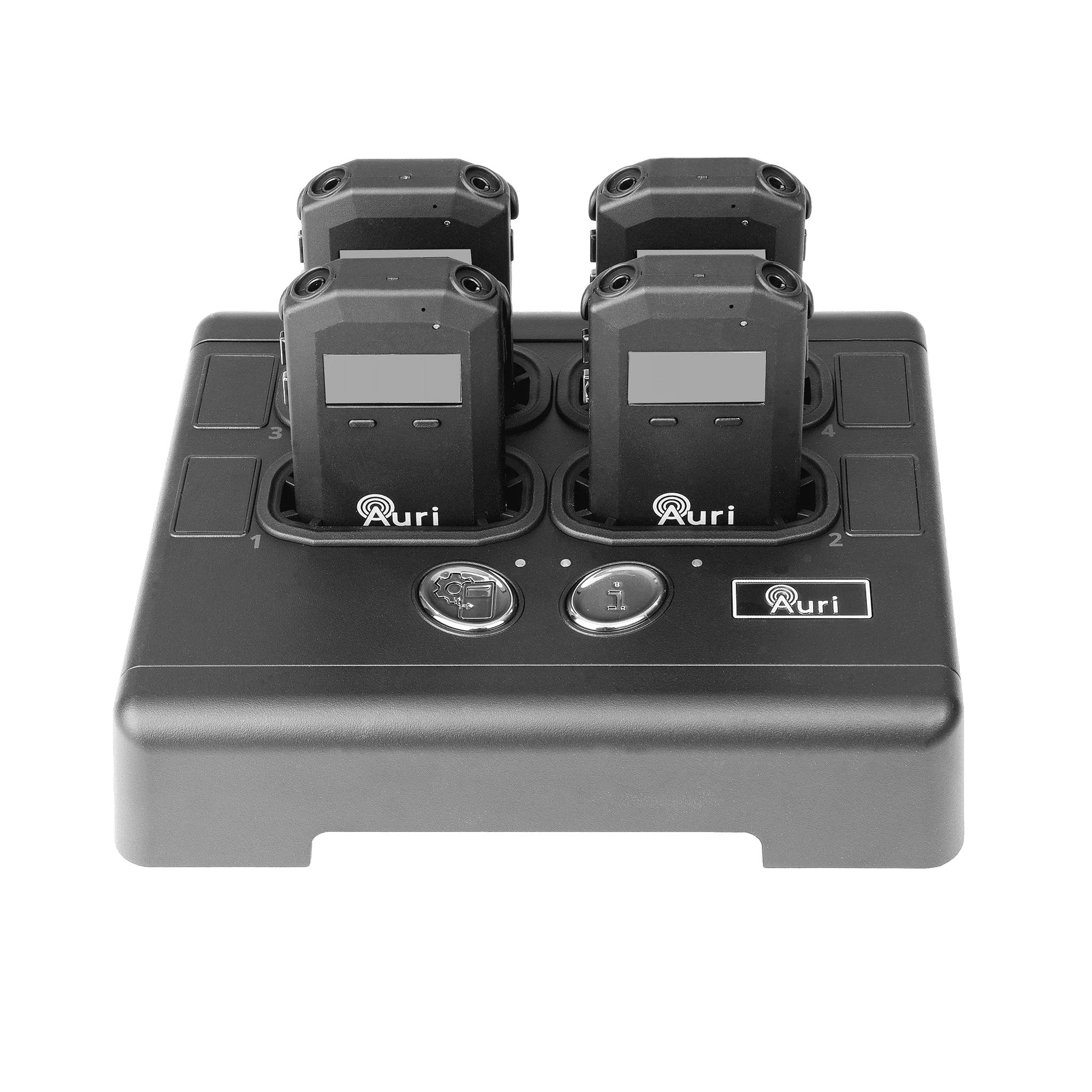 The Listen Auri Docking Station 4 is designed for flat surfaces and wall mounting, with four slots respectively. But this dock is more than a charger – it offers network capability and can store receiver configurations, enabling centralized management, programming, and configuration.