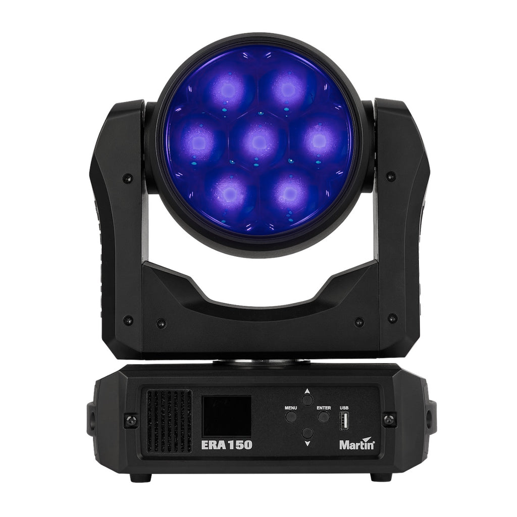 The Martin ERA 150 Wash moving-head LED wash fixture provides class-leading lumen output, high-intensity narrow zoom and full-gamut color calibration for accurate color reproduction and color temperature control, making it an incredibly versatile yet affordable workhorse lighting solution for rentals, installs and touring.