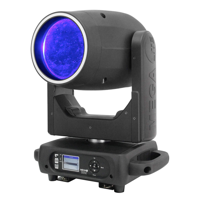 The Mega-Lite EB1 features one Appotronics 200W LED that offers a large aperture and one 4 bi-directional colors (+open) that can produce bright colorful combinations. The 1° beam angle creates piercing projections, ideal for mid to large applications. In addition, the moving head provides 48 SMD 3535 LEDs on the outer FX ring. The RGB halo has 16 RGB segments of control that add a unique bright halo effect. The segments can be broken up or used in unison to create a smooth gradient look.