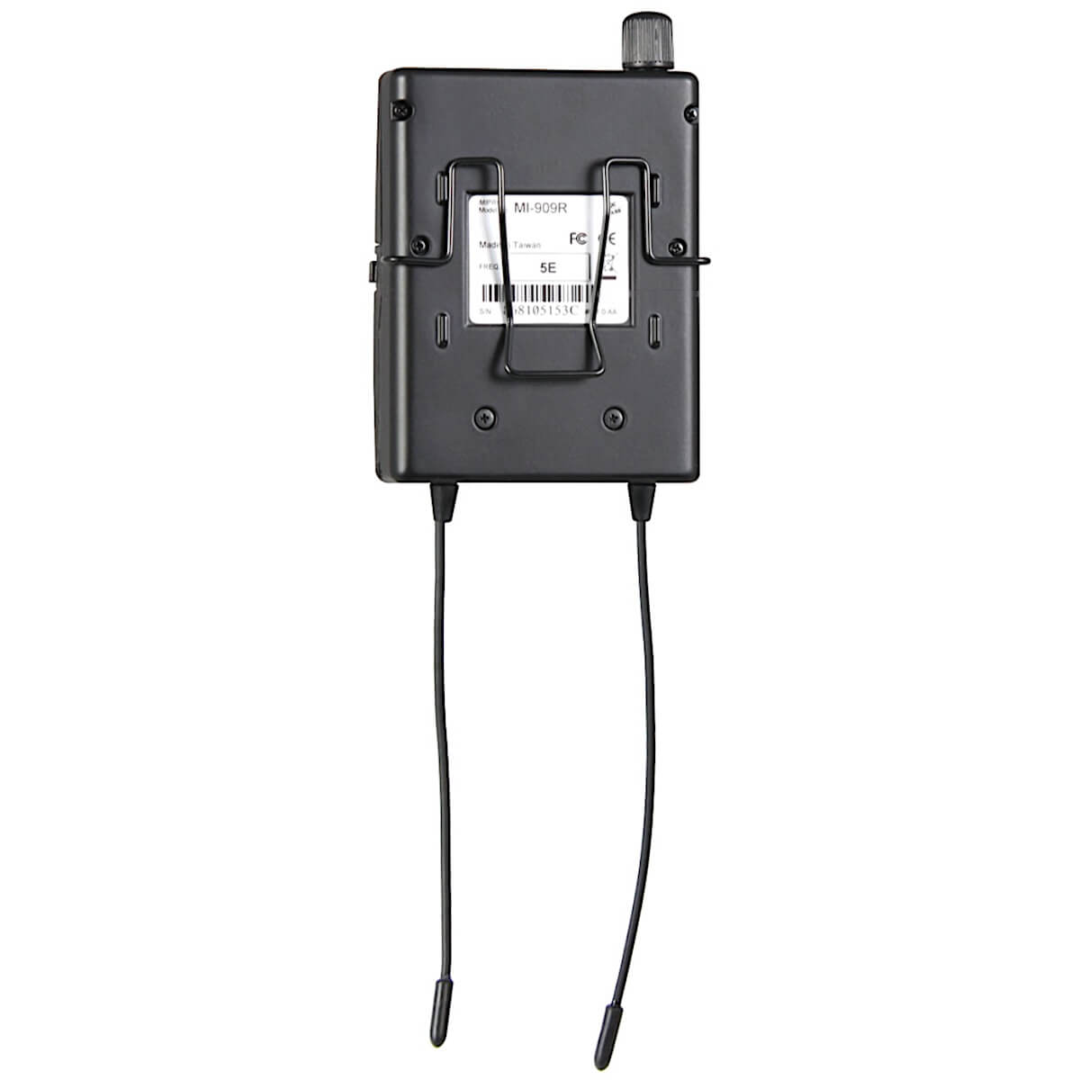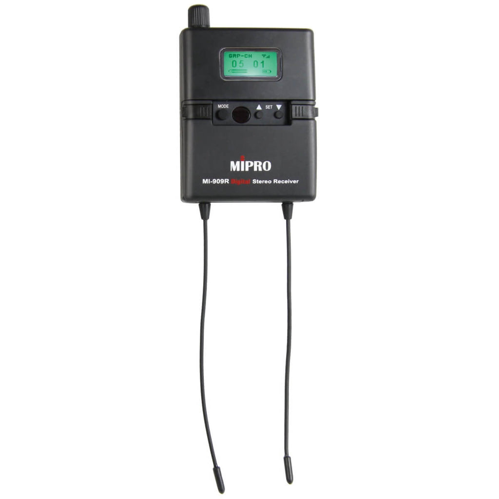 The MIPRO MI-909T/R is a professional quality digitally encrypted wireless stereo IEM system designed to replace the bulky floor wedges, amplifiers, and mixing consoles used in traditional monitoring, enabling freedom of movement onstage with improved and consistent sound quality. Featuring transmission reliability superior to that of analog systems, the MI-909 has an enhanced S/N ratio and dynamic range, providing crystal-clear audio quality via DSP technology that clearly outperforms the competition.