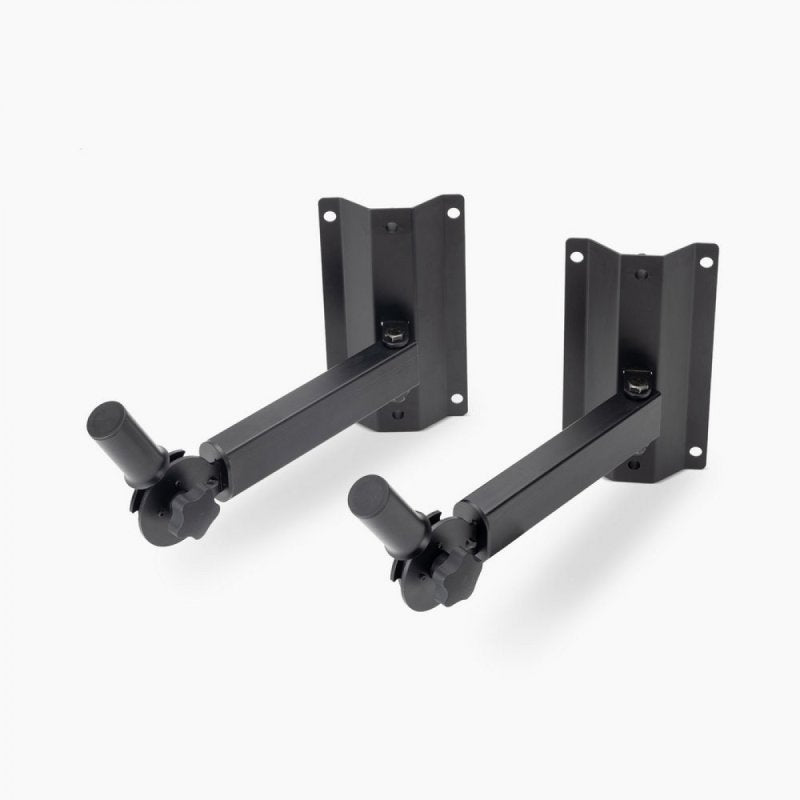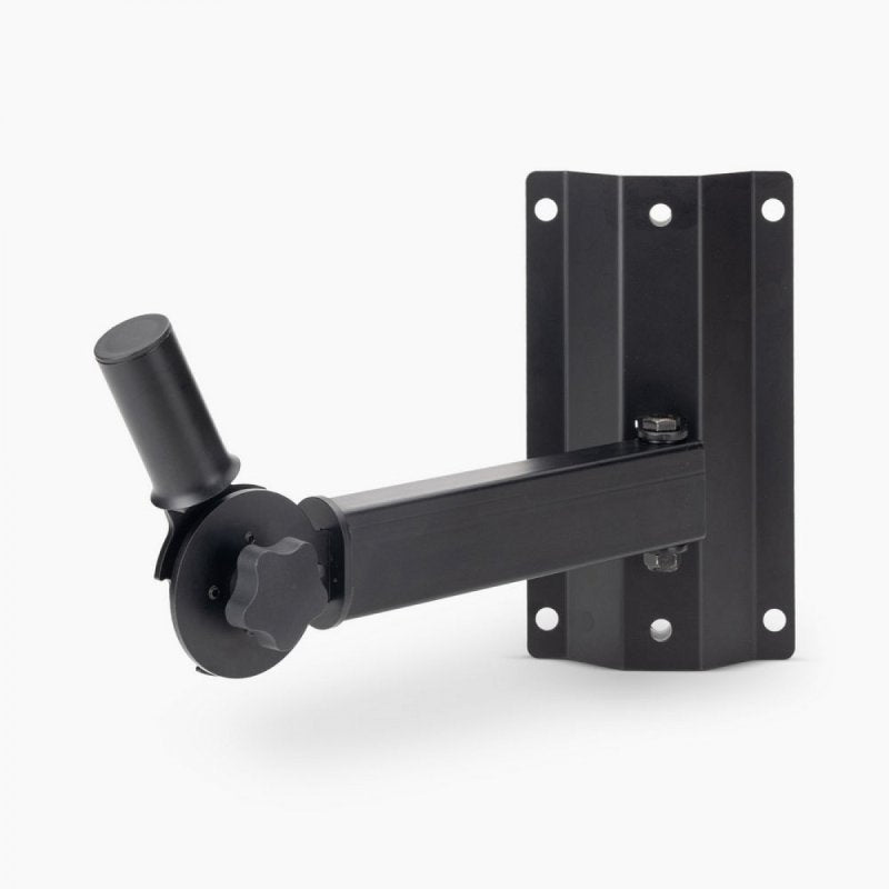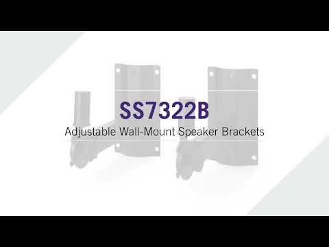The On-Stage SS7322B Adjustable Wall-Mount Speaker Bracket mounts a speaker to the wall. For precise sound direction, this bracket positions speakers facing either straight ahead or at an adjustable downward angle while the hinged support arm enables swiveling 30° side to side. Its heavy-duty construction keeps speakers properly balanced for reliable placement.