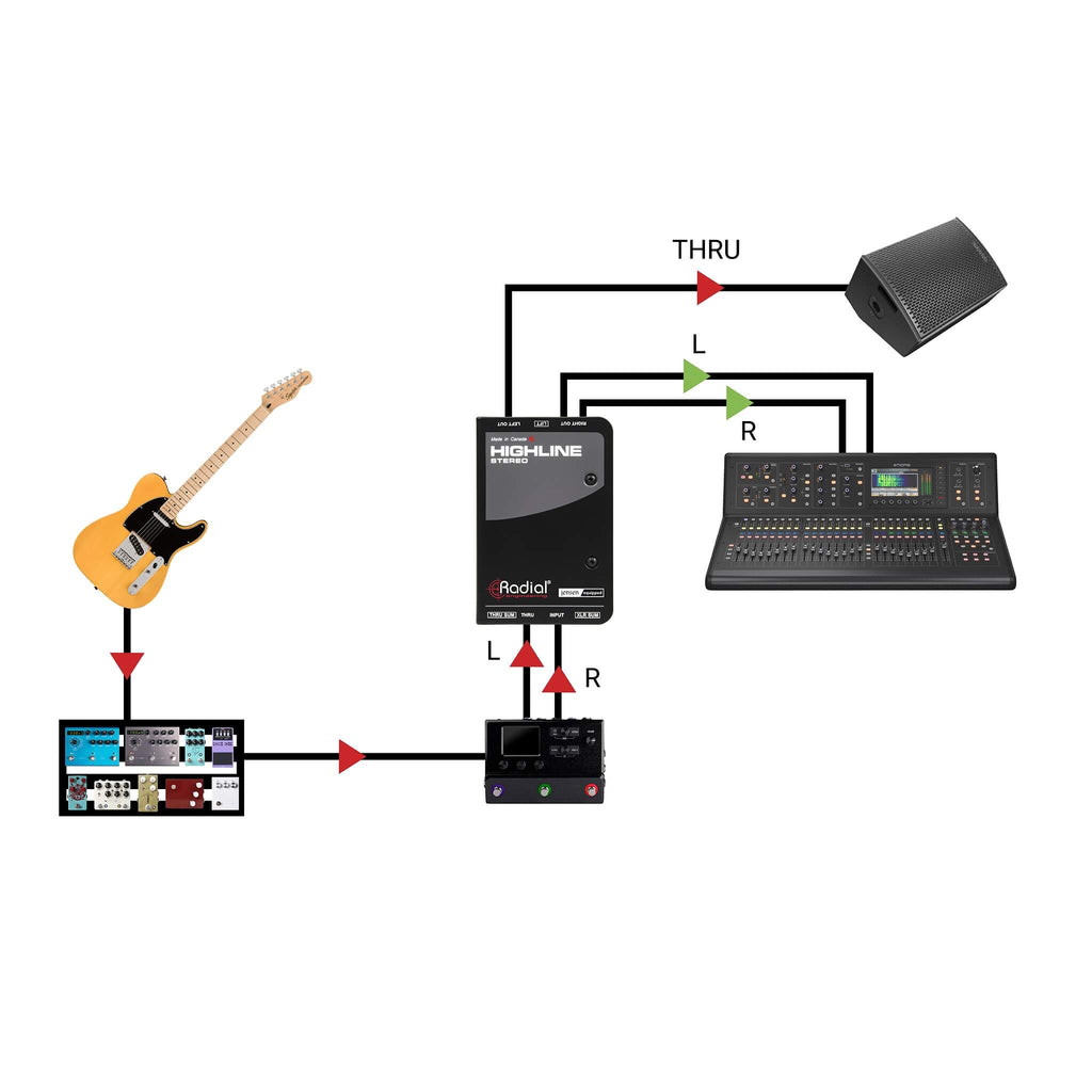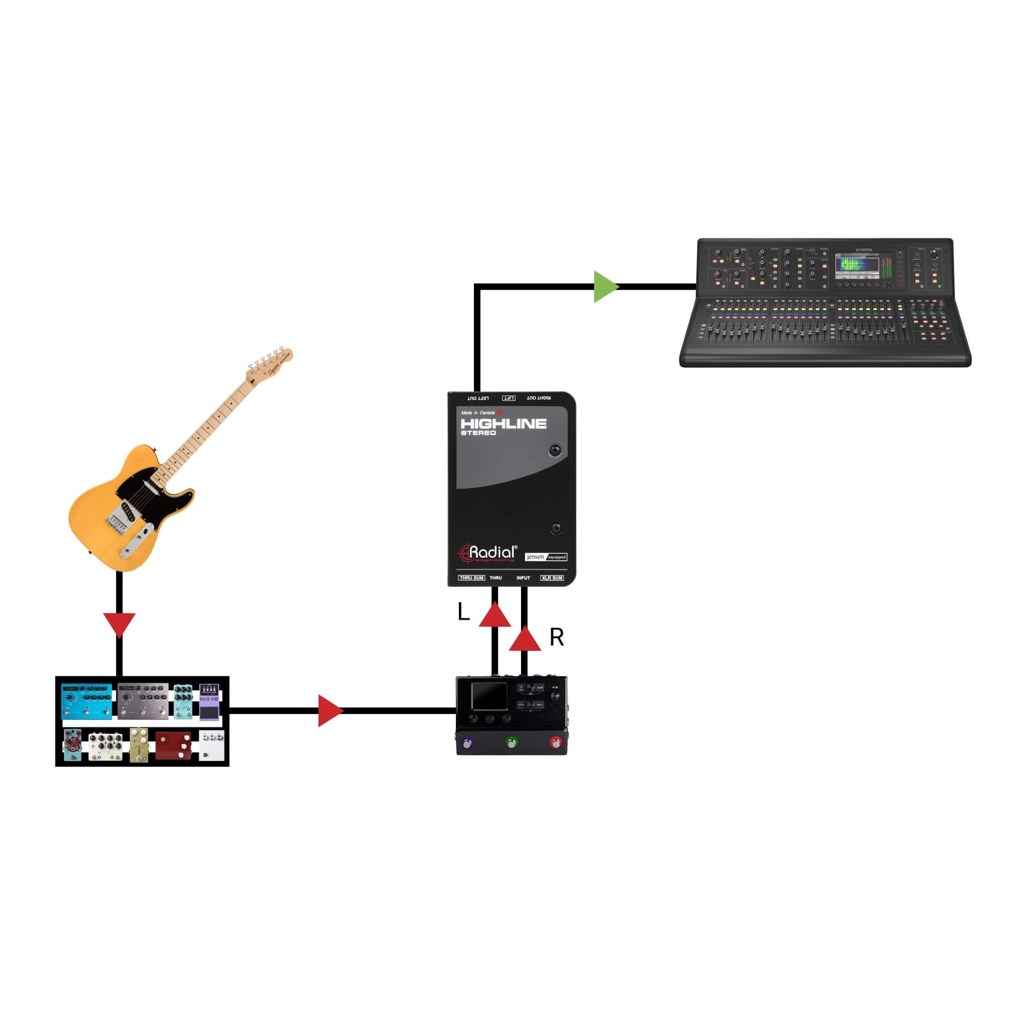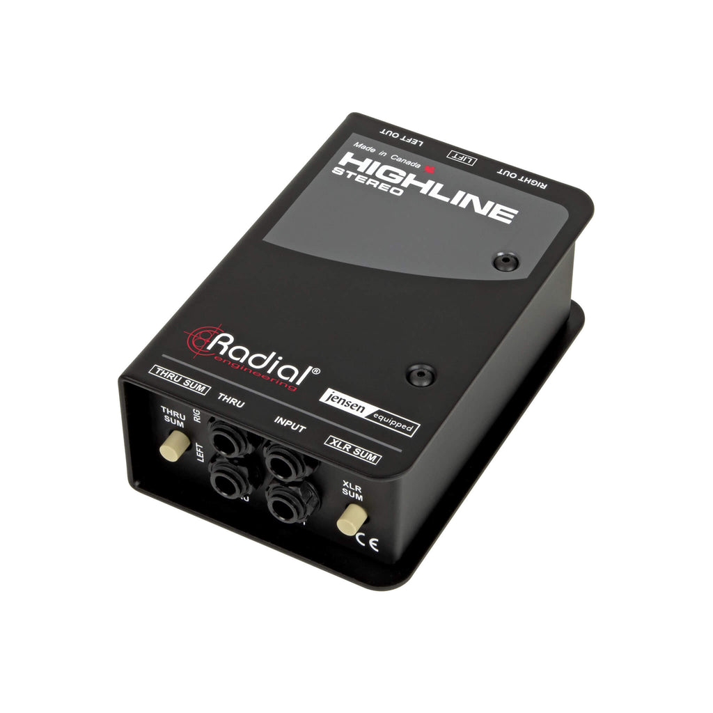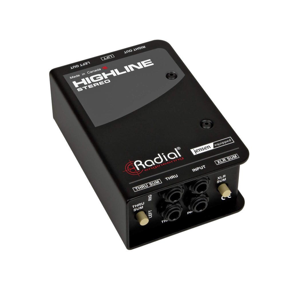 The Radial Highline Stereo is a passive stereo line isolator that is ideal for players who utilize amp simulators on their pedalboard. It features premium Jensen 1:1 transformers, which retain the full volume level from the pedalboard to the PA, while also providing galvanic isolation that eliminates ground loop noise for a clean and noise-free signal. The balanced outputs of the Highline Stereo allow for long cable runs to the PA, and the device also blocks phantom power so it never reaches the pedalboard. The Highline Stereo can be easily reconfigured for multiple setups with the use of two summing switches: these allow you to connect to the PA or your stage monitors in either stereo or mono.