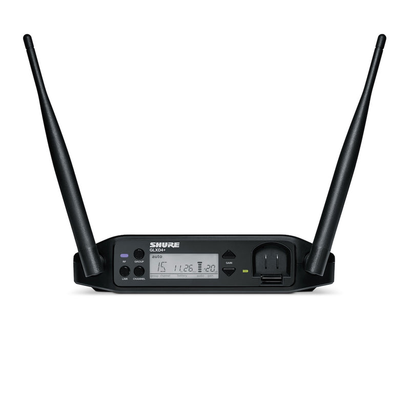 • GLXD4+ Receiver has front charging port for Shure SB904 Li-Ion battery