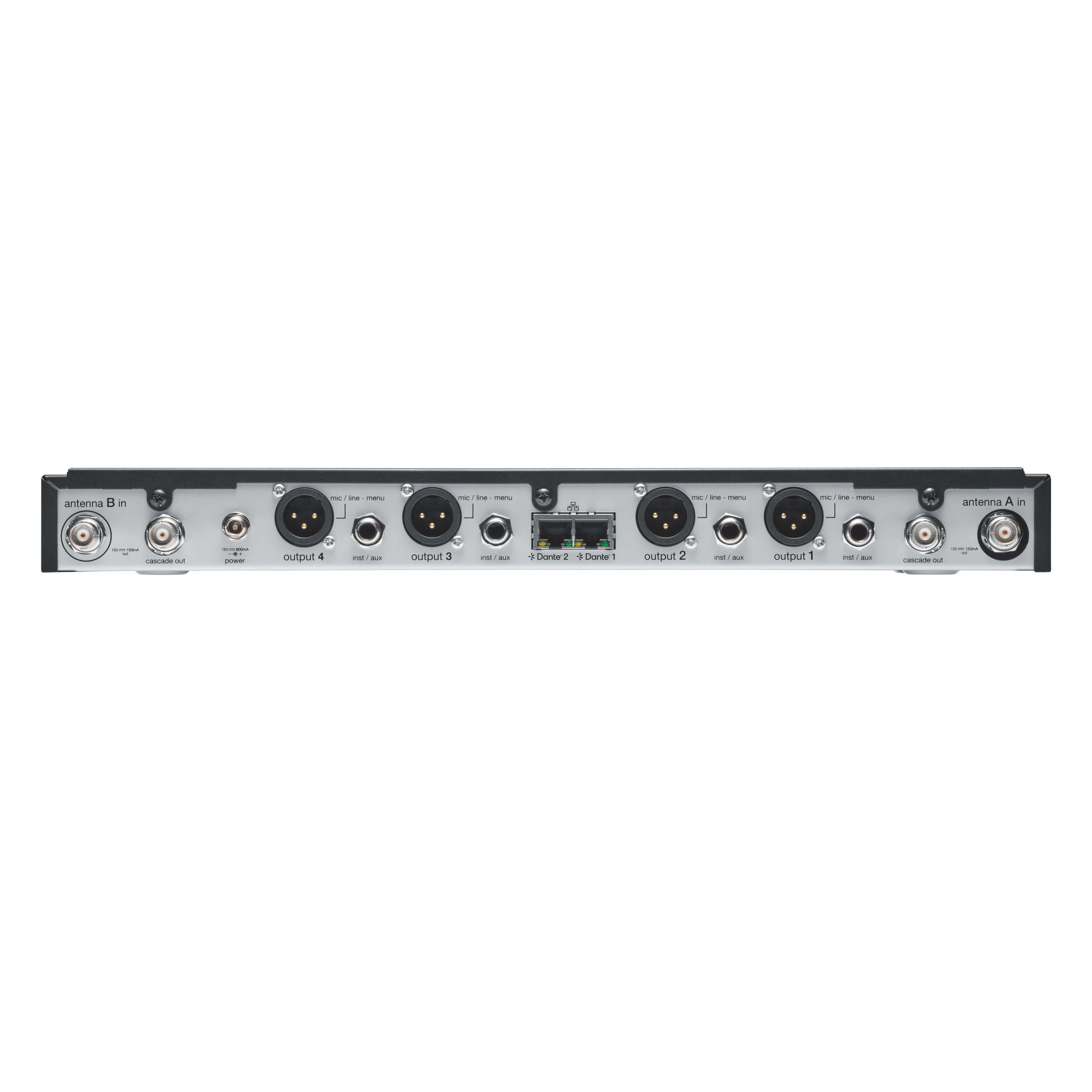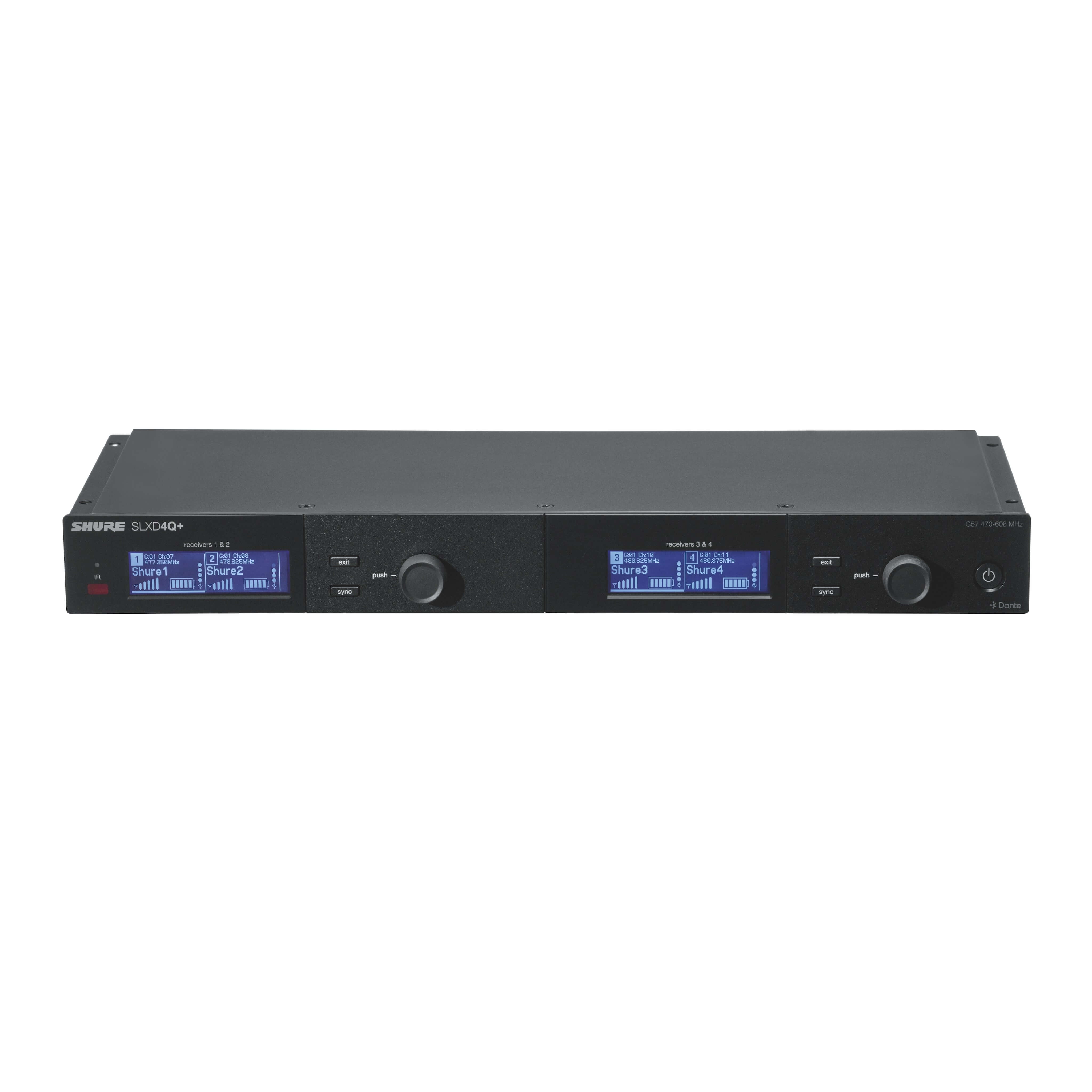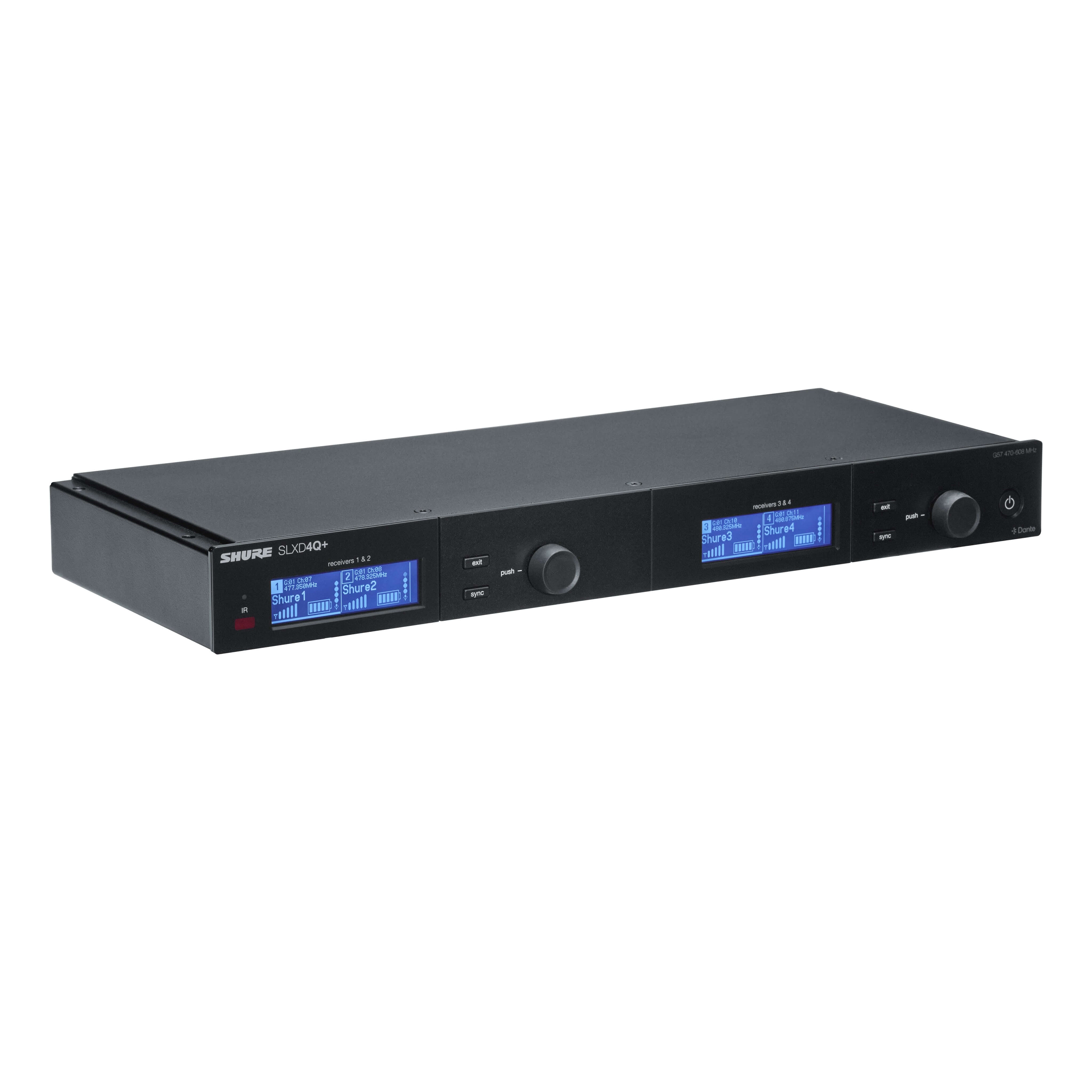 The Shure SLXD4QDAN+ quad channel digital wireless receiver is compatible with all SLX-D transmitters, housed in a rugged 1RU chassis with Ethernet and Dante networking. It delivers flawless 24-bit audio, streamlined setup, and rock solid RF performance for a suite of wireless system configurations. Featuring industry-leading digital wireless technology in a convenient full-rack quad configuration, the SLXD4QDAN+ efficiently saves space and easily scales to match channel requirements.