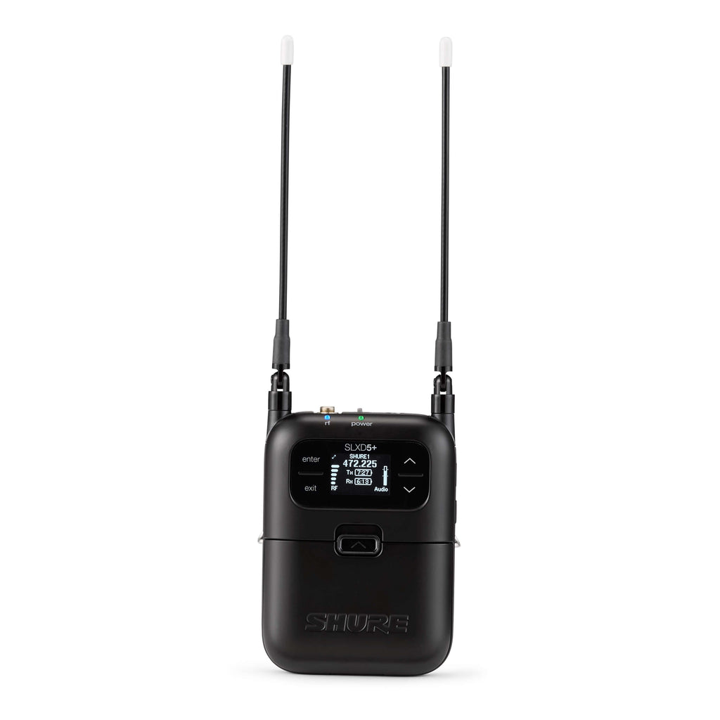 The Shure SLXD5+ single channel portable digital wireless receiver is at home on top of your camera or in an audio bag providing efficient long-range UHF transmission and easy-to-use setup features to deliver wireless excellence, wherever required. Wide-tuning SLXD+ transmitters and receivers stay in sync courtesy of a dedicated ShowLink® Ease control link. Manage interference, scan for new channels and update for clear transmission automatically. Also monitor and configure via a paired mobile device.