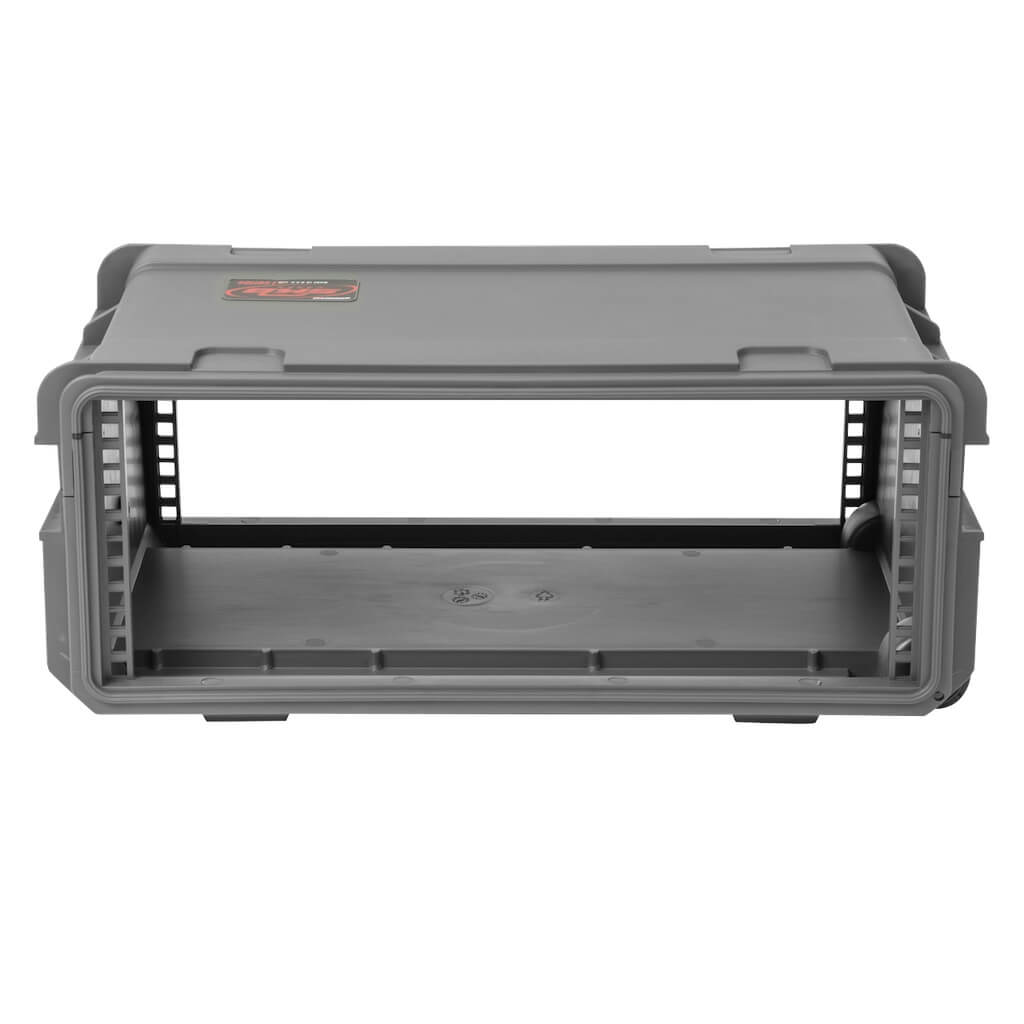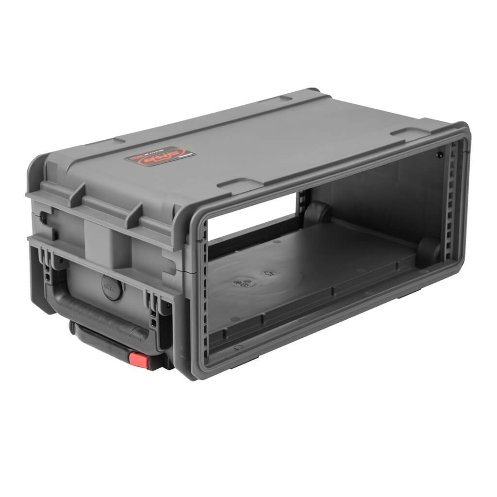 The SKB Cases 3i-4U11G-W 4U Injection Molded Carry-On Rack Case provides fast deployment of mobile communications equipment with the peace-of-mind that comes from being able to carry your gear with you into the aircraft cabin rather than check it. It features a 4U capacity, TSA-accessible locking latches, front and rear rack rails, gasket-sealed doors, and built-in wheels and telescoping pull handle. This case also includes a specially designed molded-in lip to protect the rack from the elements.