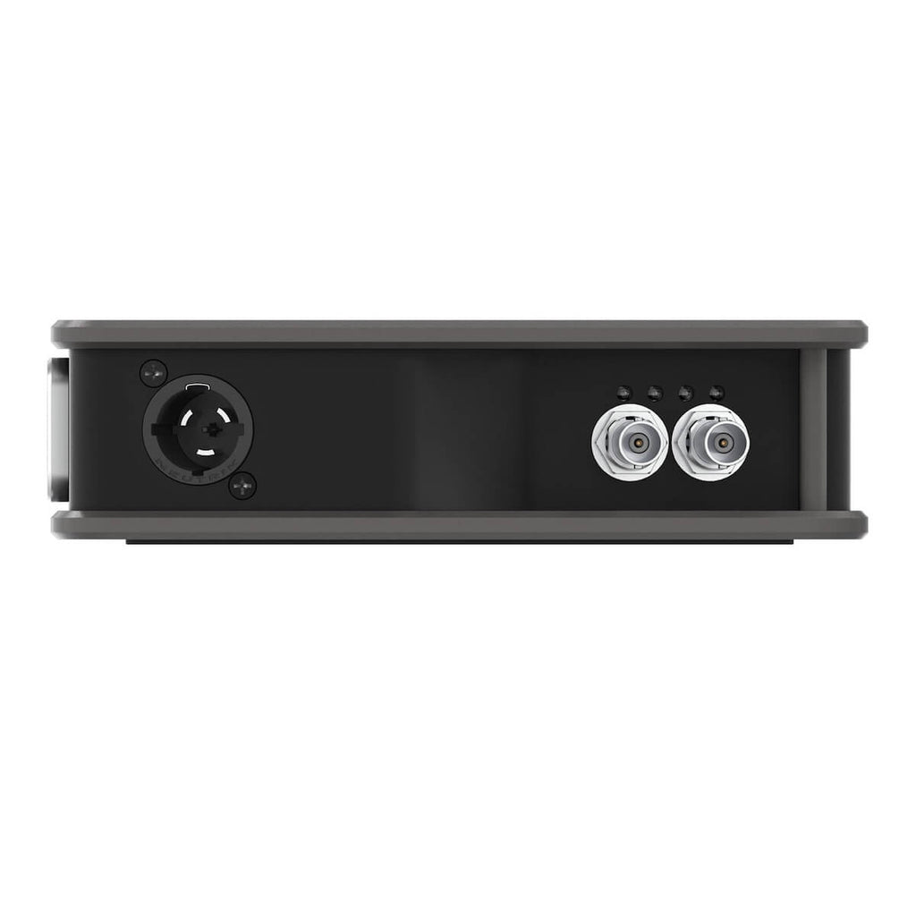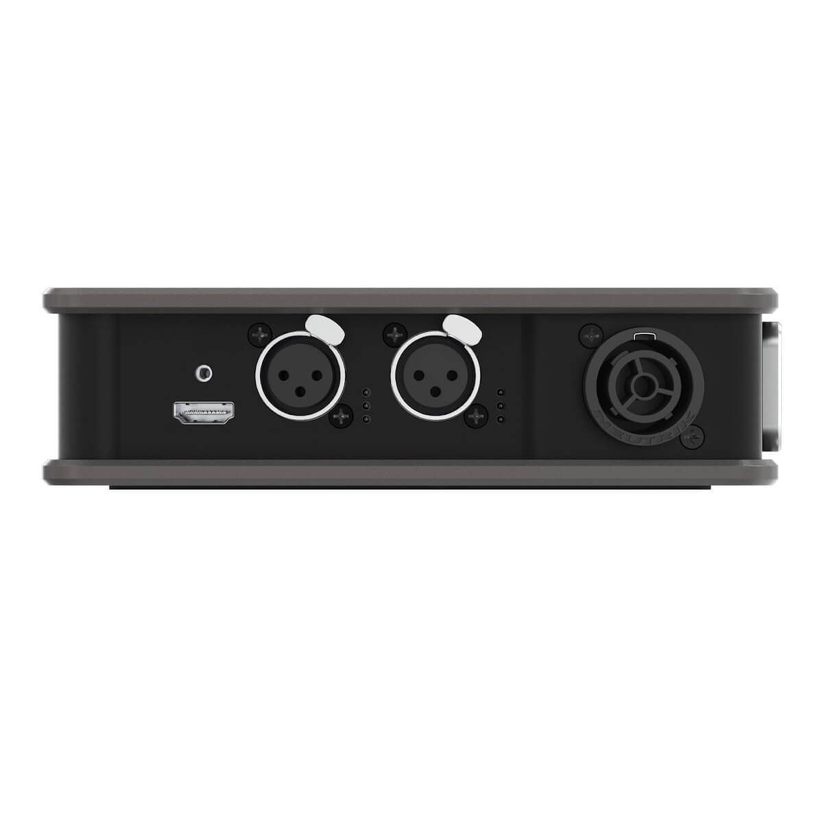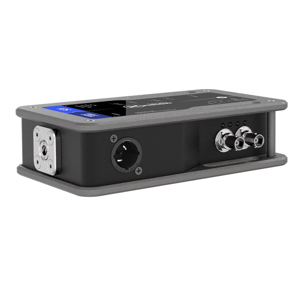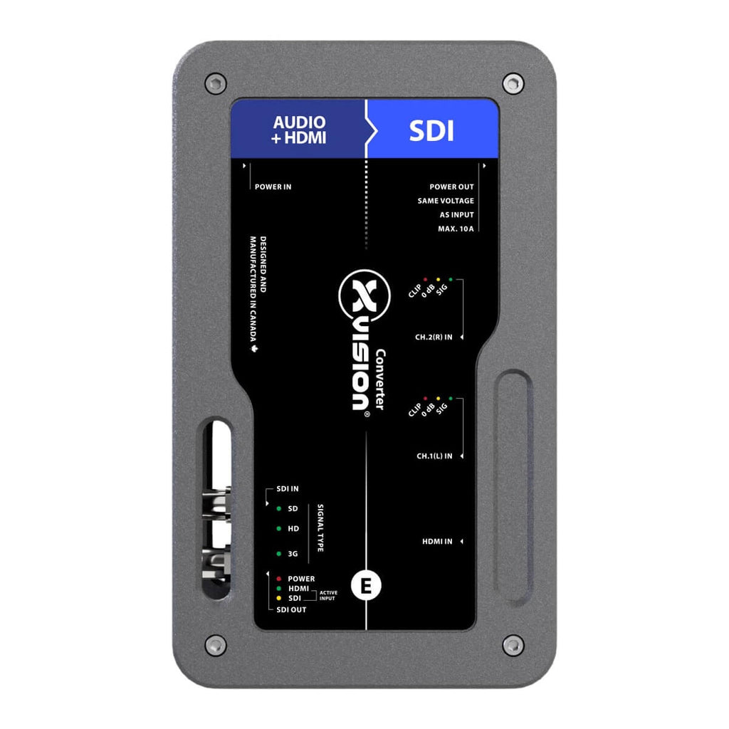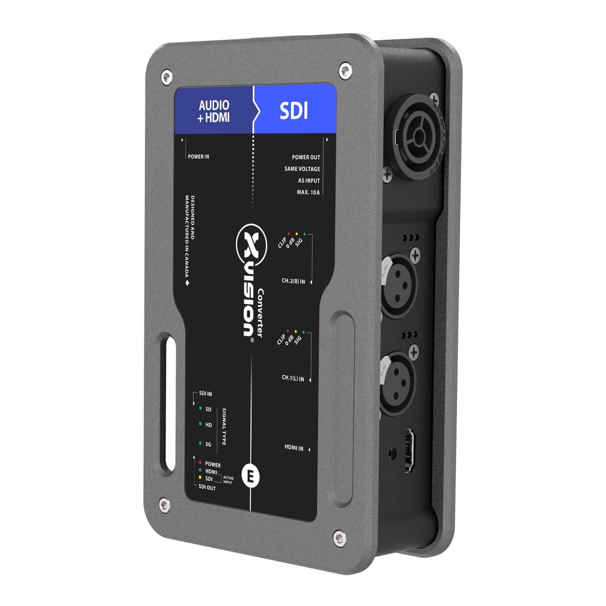 The Theatrixx XVVAUDIO2SDIT1 xVision Converter SDI Audio Embedder with True1 combines XLR analog audio with incoming HDMI or SDI into a reclocked SDI output with automatic input detection. It also features professional, balanced -4dB XLR analog audio inputs, each with a 3-segment LED meter, and a locking HDMI port to prevent accidental disconnection.