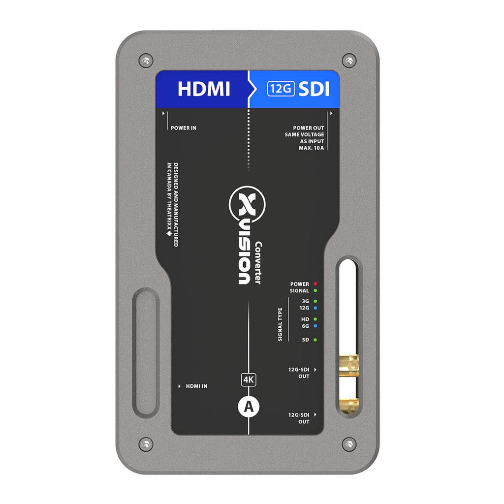 The Theatrixx XVVHDMI2SDIT1-12G xVision Converter with True1 converts HDMI video to 12G-SDI with plug-n-play simplicity - No dip switches, buttons or menus to configure. It just works.