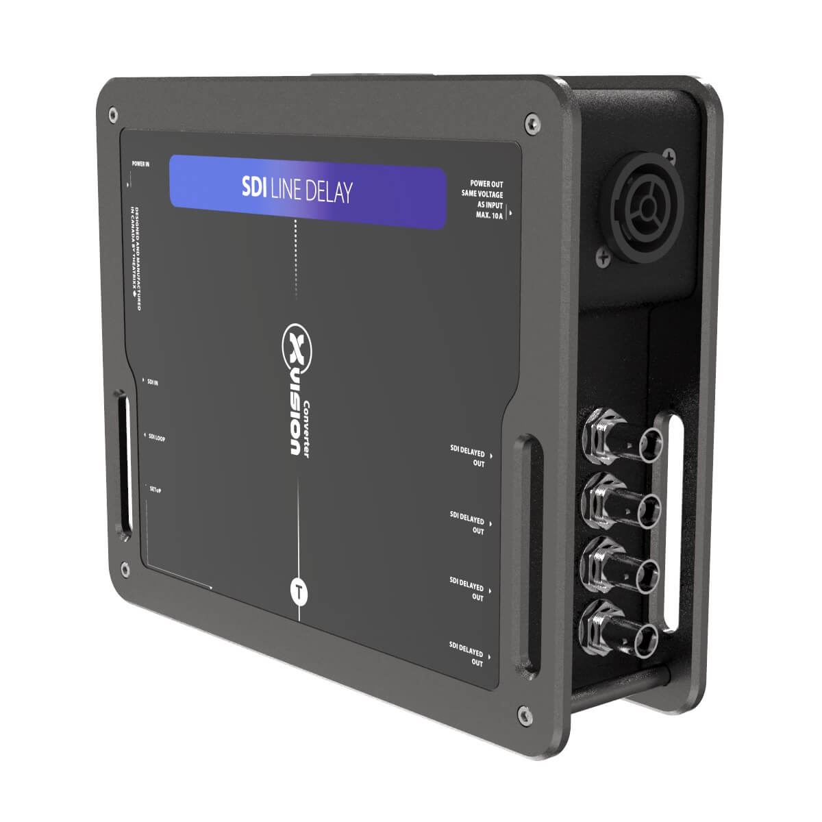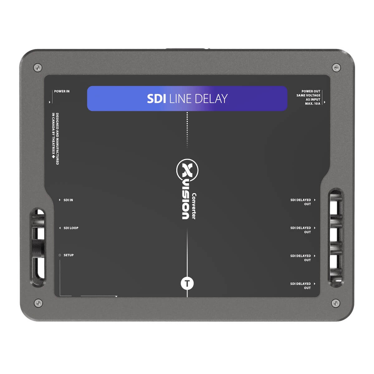 The Theatrixx XVVSDIDLY xVision Converter 3G-SDI Line Delay with True1 enables you to delay your video source up to 160 frames to sync it with your audio. It features 1 SDI input with a convenience loop out with no delay. A control wheel and a LCD display which indicates the amount of delay in both frames and milliseconds. The settings are automatically retained whenever the unit is shutdown. The 4 SDI outputs share the same adjustable delay in order to avoid the need of a distribution amp on your signal output.