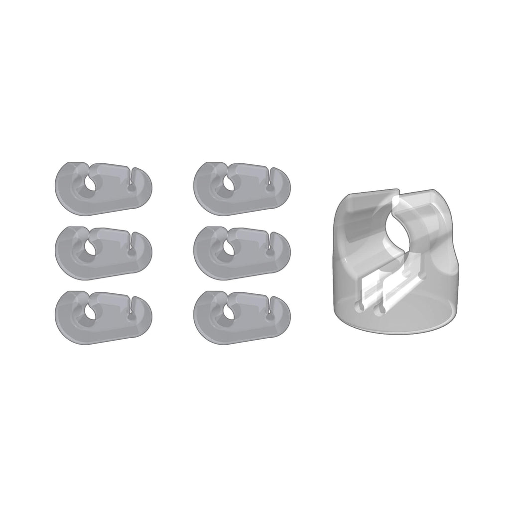 The Headband 90° Cable Connector Mount secures the cable connector, allowing the replaceable cable to be concealed and wire managed accordingly. Six clear Headband Cable Clips secure the cable on the SH20 headband.