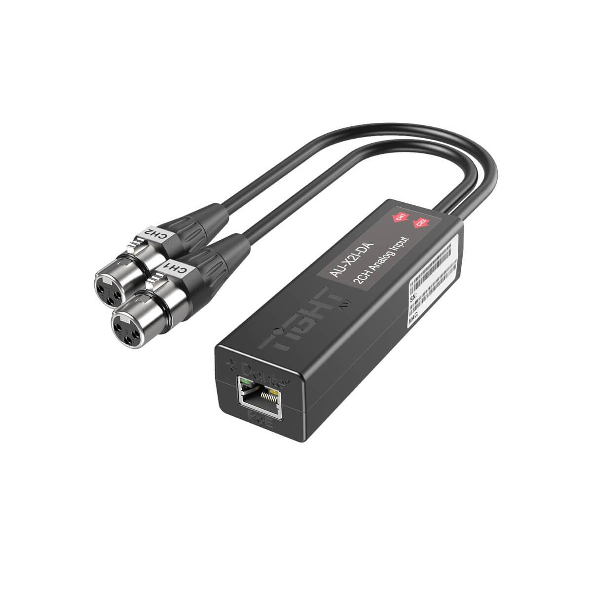 The TiGHT AV AU-X2I-DA inputs 2 channels of analog line-level audio to your Dante network. It supports sample rates up to 96kHz using Audinate’s original Dante Ultimo chip. Featuring 2 female XLR standard connectors, the AU-X2I-DA is a simple and cost-efficient solution to connect analog equipment to a Dante network. PoE support allows for a simplified installation via a PoE-capable network switch or from a separate PoE injector.