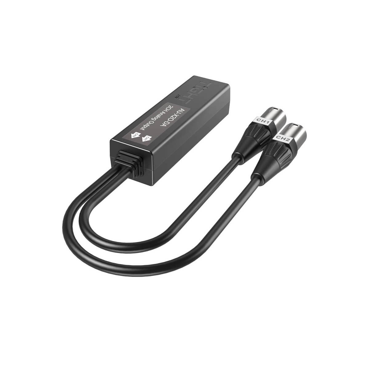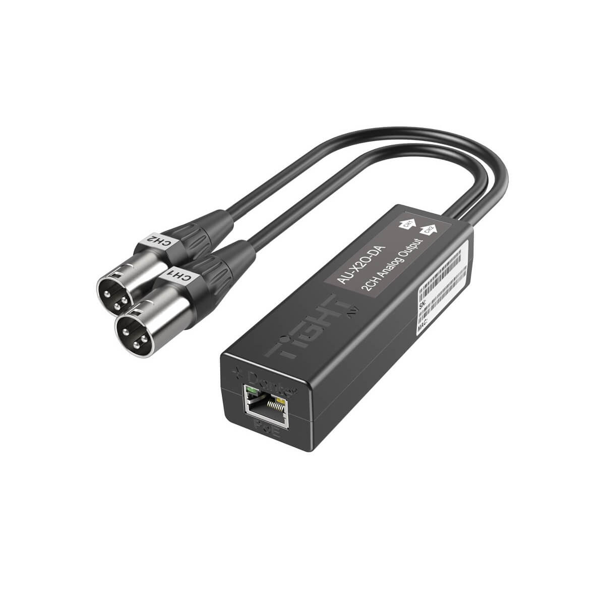 The TiGHT AV AU-X2O-DA outputs 2 channels of analog line-level audio from your Dante network. It supports sample rates up to 96kHz using Audinate’s original Dante Ultimo chip. Featuring 2 male XLR standard connectors, the AU-X2O-DA is a simple and cost-efficient solution to connect analog equipment to a Dante network. PoE support allows for a simplified installation via a PoE-capable network switch or from a separate PoE injector.