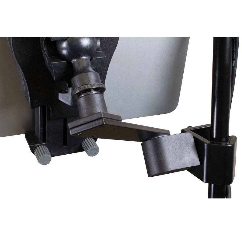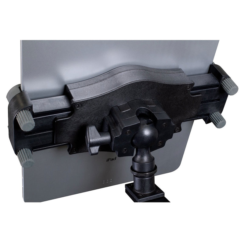 The Ultimate Support UTH-100 Universal Tablet Holder supports a wide variety of tablet types and sizes. It features a fixable ball joint head, tension spring clamping, and adjustable pole clamp mount. The wide range of movement available to the arms allows them to be adjusted for nearly all scenarios, from studio to stage.