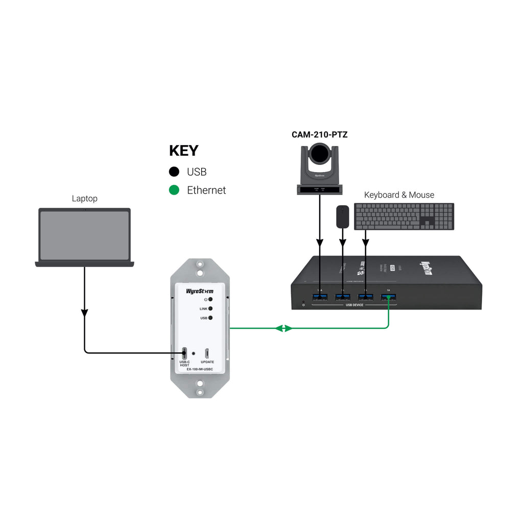 The WyreStorm EX-100-IW-USBC is a versatile and powerful solution for extending your USB connectivity. Engineered to support the latest USB 3.2 Gen 1 standard, this extender offers rapid data transfer speeds of up to 5Gbps, ideal for a variety of high-performance USB peripherals. Its four-port design allows for simultaneous connection of multiple devices. With a remarkable capability to extend USB signals up to 100 meters, it ensures reliable, long-distance connectivity in a convenient form factor.