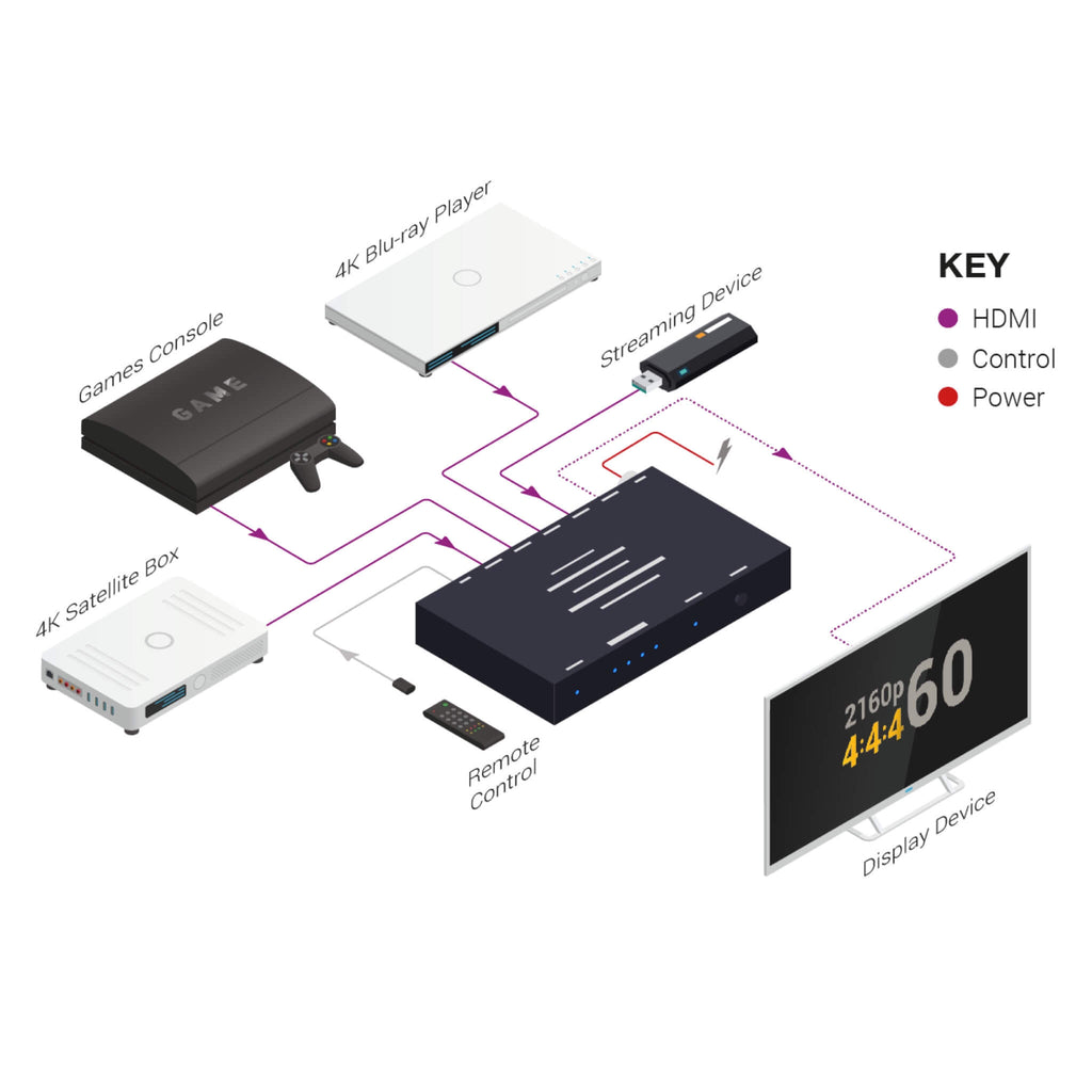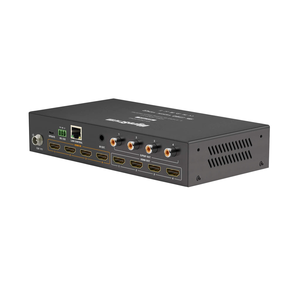 • Routes up to four 4K HDR HDMI sources to four 4K HDR display devices