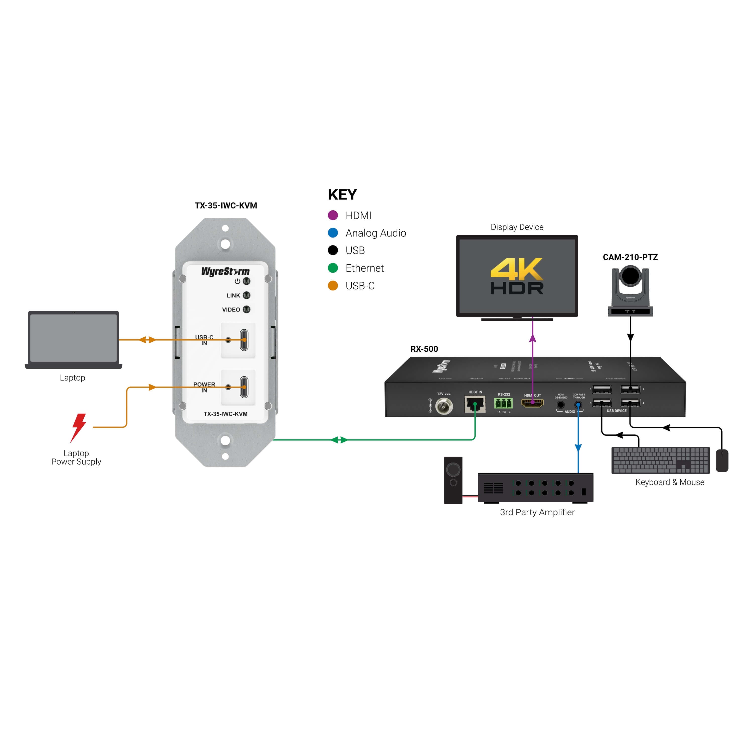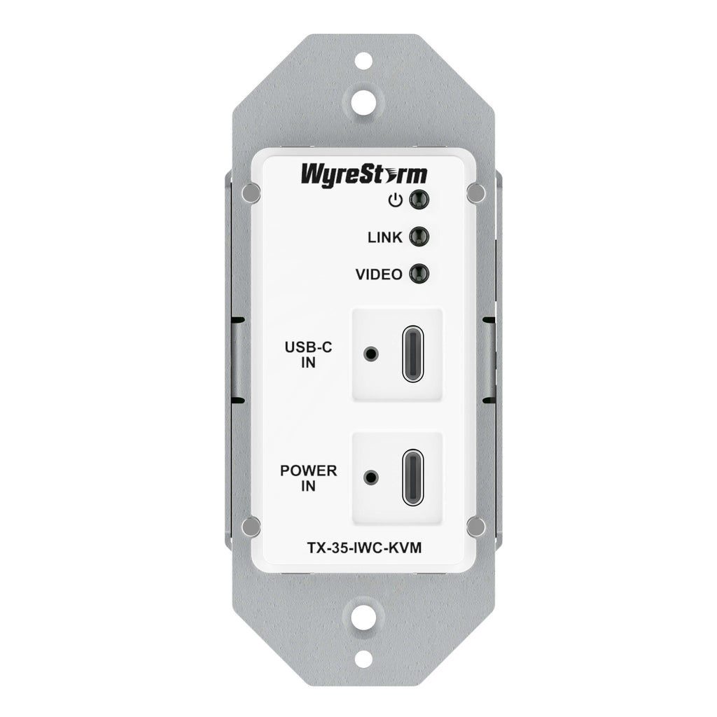 The WyreStorm TX-35-IWC-KVM is a single gang US Style HDBaseT 2.0 Transmitter that provides a practical solution for extending video and control signals. Featuring a USB Type C input, any source support Display Port Alt mode can be extended with ease. With support for 4K 60 maximum resolution and USB 2.0 extension (150Mbps), it’s well-suited for use in conference rooms, classrooms, and training facilities, ensuring that your signals are transmitted effectively to where they are needed. To enhance its performance, pairing it with the RX-500 is recommended. This setup offers a straightforward way to improve signal transmission in any professional environment. Don’t forget to connect a Type C Power supply to the included power input to power your connected device with up to 100W charging.